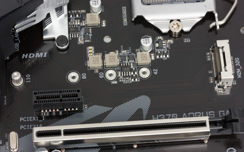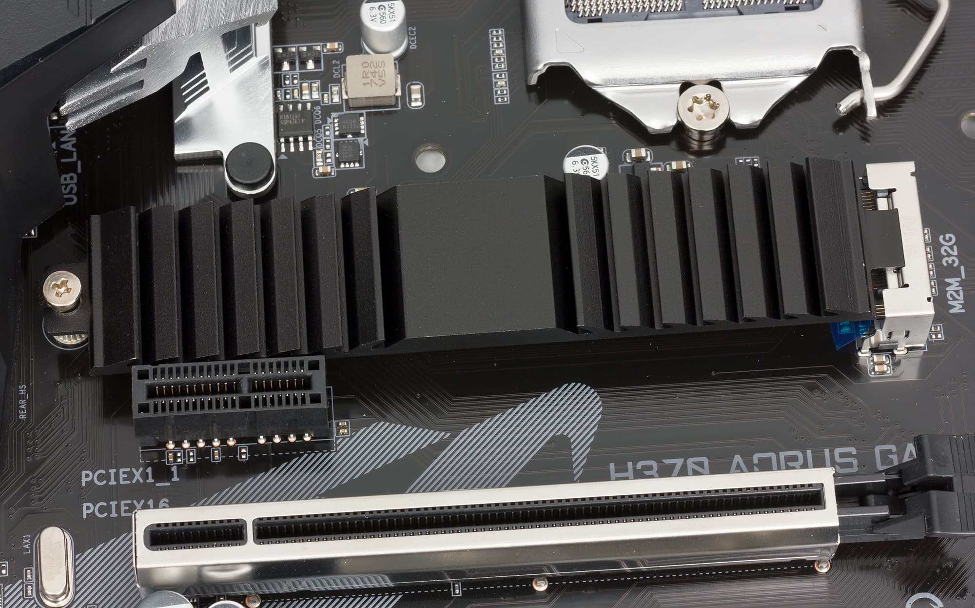 Для установки видеокарт, плат расширения и накопителей на материнской плате H370 Aorus Gaming 3 WiFi имеется два слота с форм-фактором PCI Express x16, четыре слота PCI Express 3.0 x1 и три разъема M.2.
