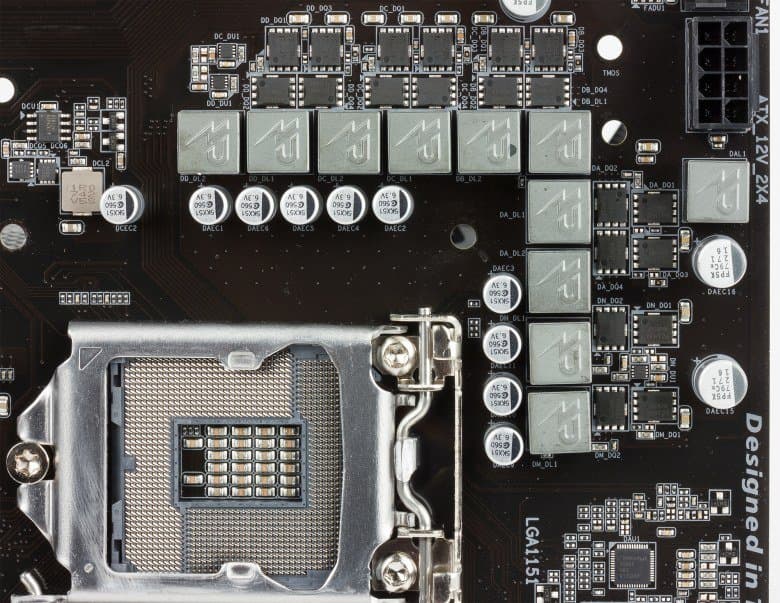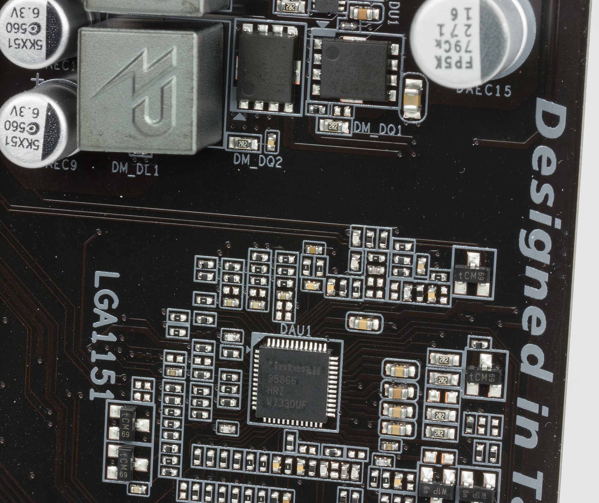 Регулятор напряжения питания процессора на плате является 10-канальным. Управляется регулятор напряжения питания 7-фазным (4+3) PWM-контроллером Intersil ISL95866. В каждом канале питания используется пара MOSFET-транзисторов NTMFS4C06N и NTMFS4C10N компании On Semiconductor.