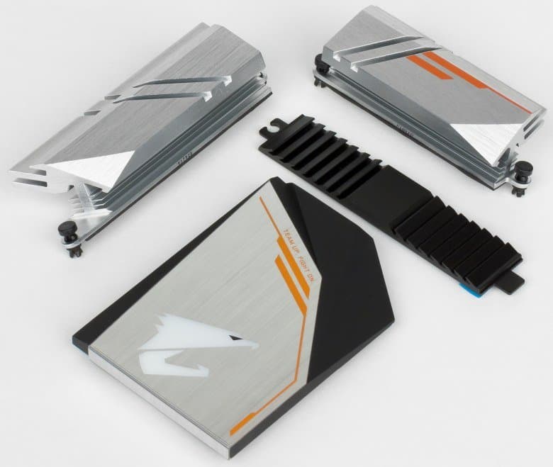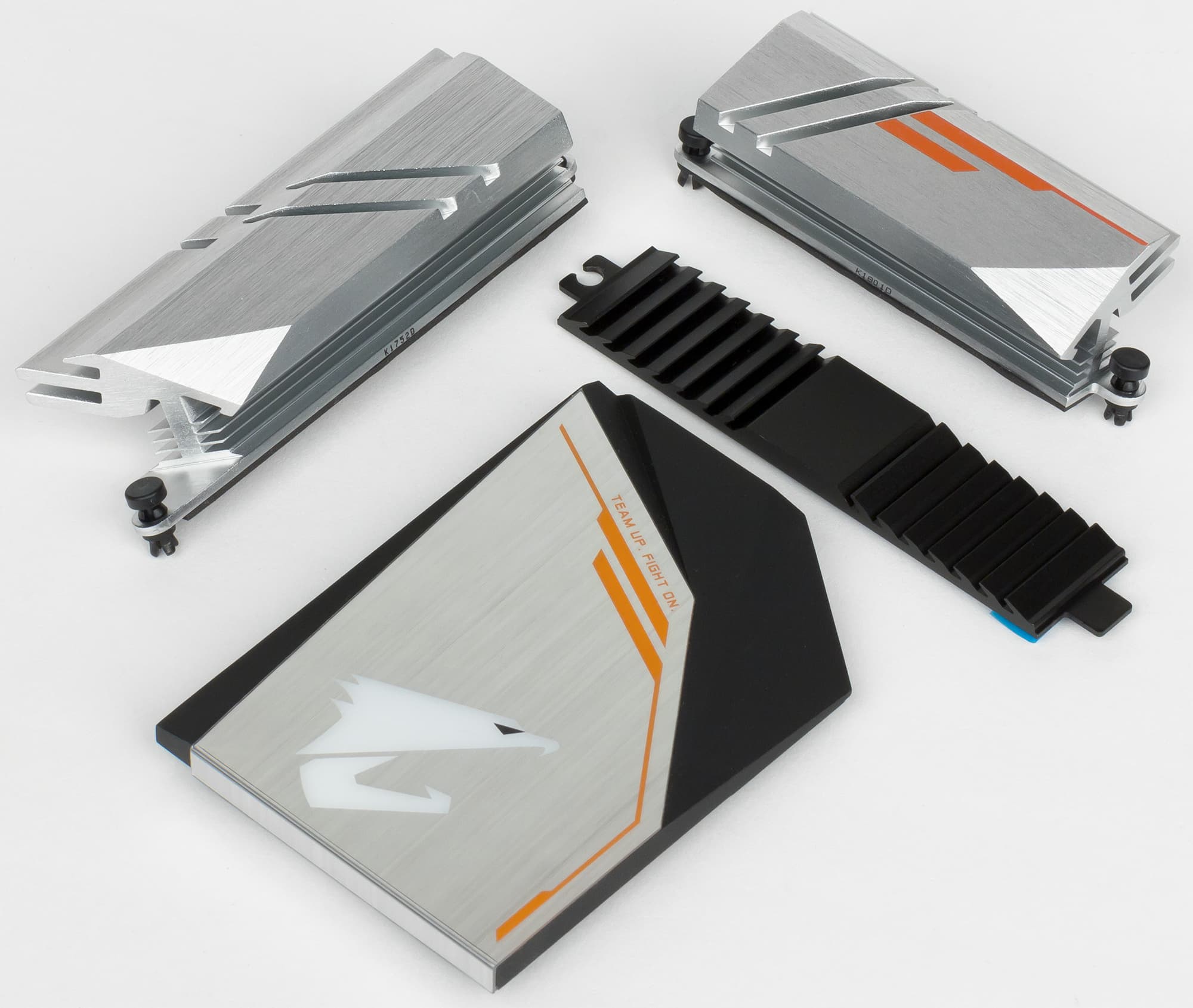 Система охлаждения платы H370 Aorus Gaming 3 WiFi состоит из трех радиаторов. Два радиатора расположены по двум смежным сторонам процессорного разъема, они предназначены для отвода тепла от MOSFET-транзисторов регулятора напряжения питания процессора. Еще один радиатор предназначен для охлаждения чипсета.