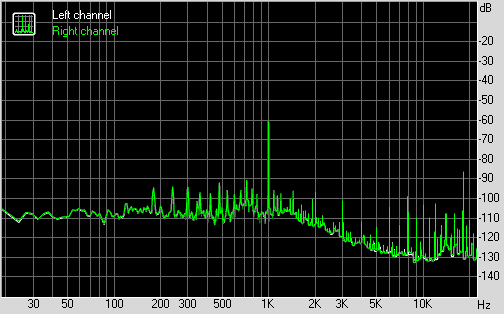 Для тестирования выходного звукового тракта, предназначенного для подключения наушников или внешней акустики, мы использовали внешнюю звуковую карту Creative E-MU 0204 USB в сочетании с утилитой RightMark Audio Analyzer 6.3.0. Тестирование проводилось для режима стерео, 24-бит/44,1 кГц. По результатам тестирования аудиотракт на плате H370 Aorus Gaming 3 WiFi получил оценку «Хорошо».