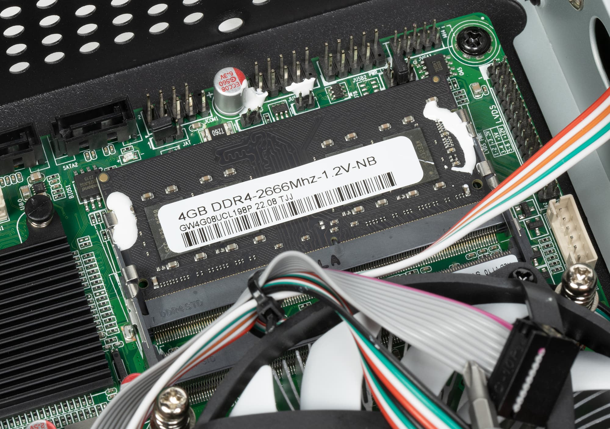 В частности, доступны два слота оперативной памяти, один из которых занят модулем SO-DIMM DDR4-2666. 4 ГБ в настоящее время считается уже недостаточной емкостью — зато дешево. Если будет необходимость добавить памяти, спокойно устанавливаем второй подходящий модуль любой потребной емкости (во время тестирования мы этим воспользовались).