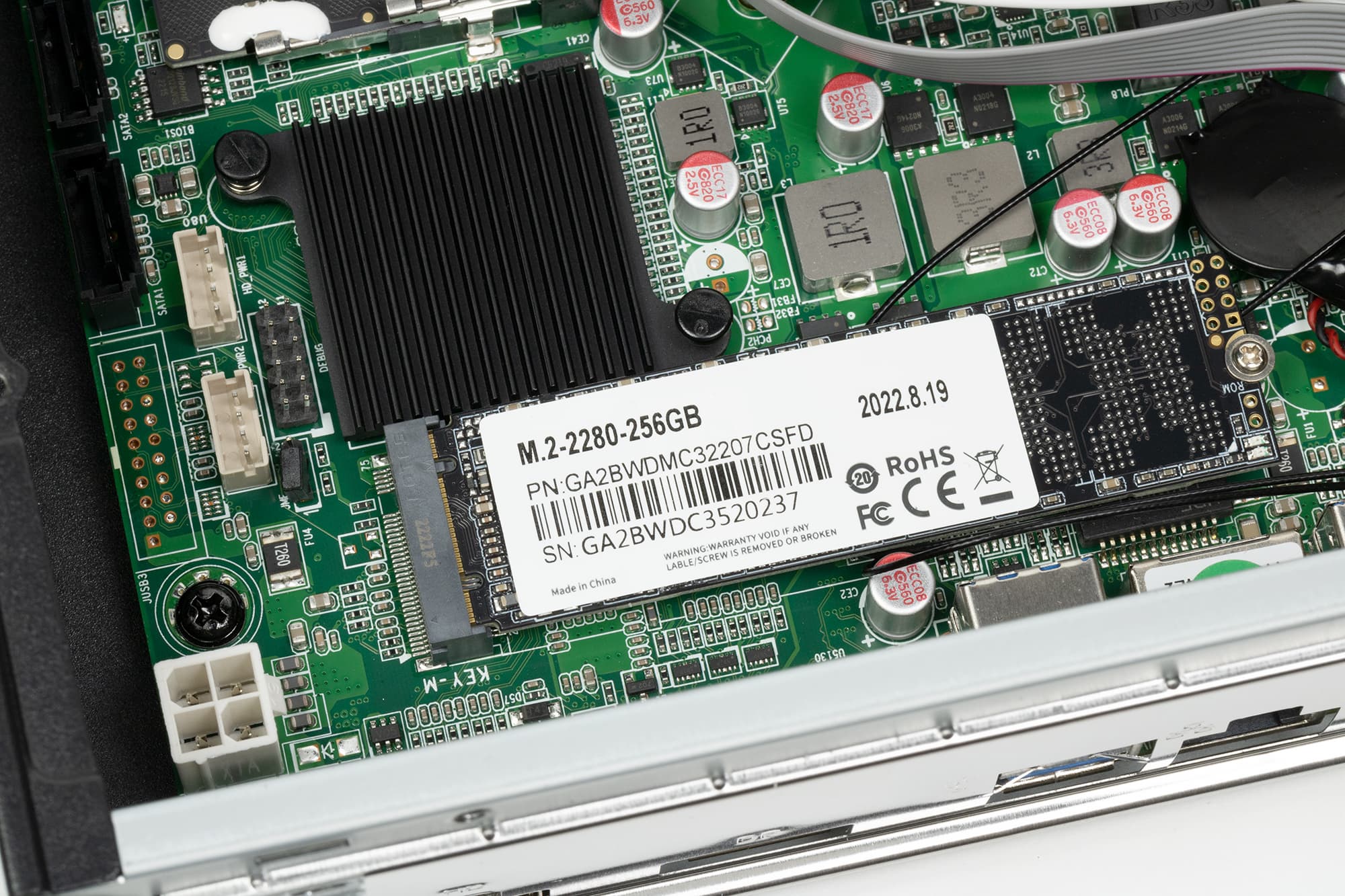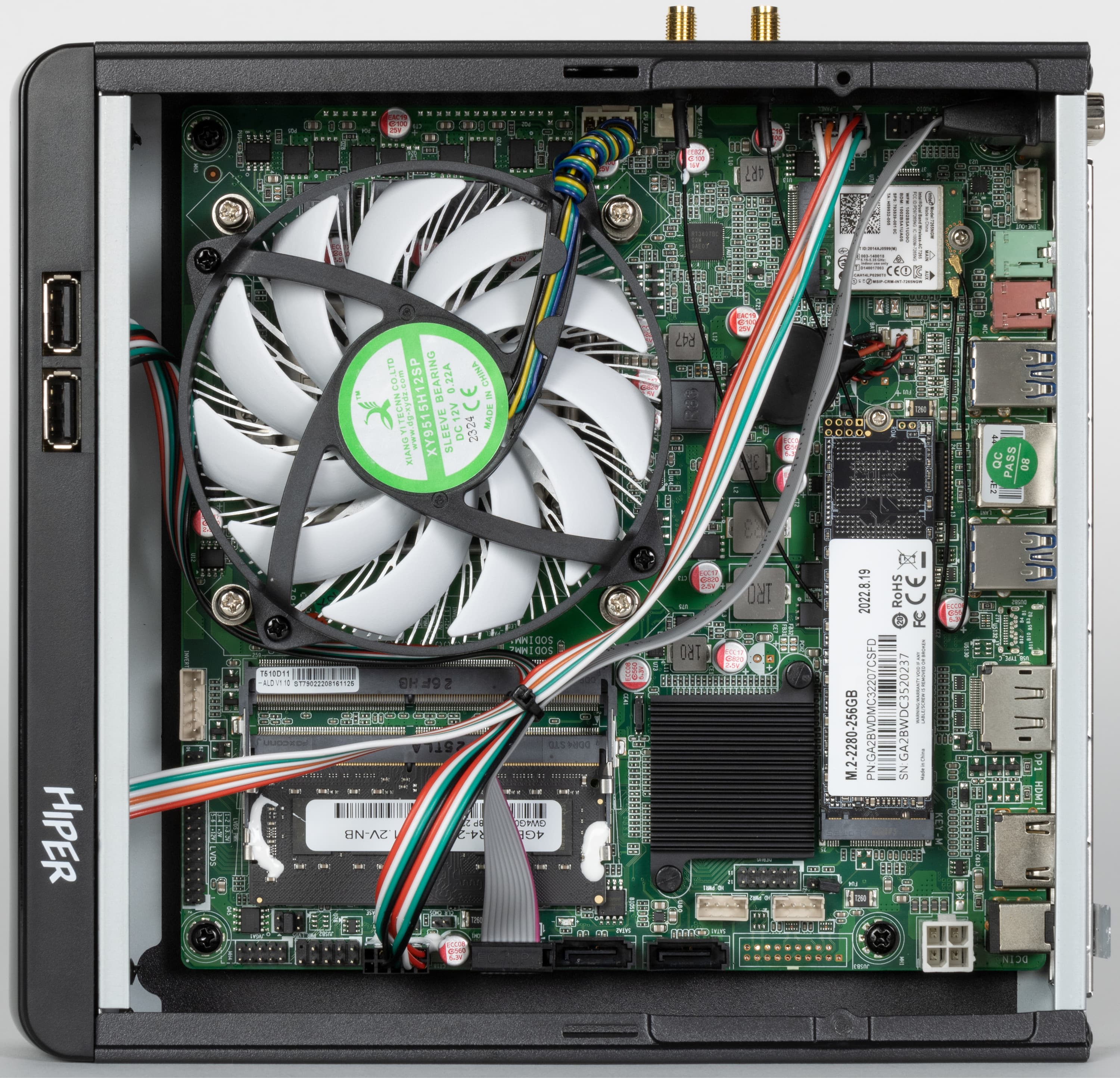 SSD здесь установлен точно такой же, как и в протестированном ранее моноблоке Hiper V6. Это бюджетная SATA-модель на контроллере YeeStor YS9082HC и 96-слойной TLC-памяти Micron с кристаллами по 512 Гбит общей емкостью 256 ГБ. Также младшие комплектации встречаются и с накопителями емкостью 128 ГБ, но в последнее время 256 — чаще. Да и правильно — разница в цене между ними уже слишком невелика, чтобы такой способ экономии был практически полезен. При необходимости легко меняется на что-то более емкое и быстрое — благо слот поддерживает и SATA, и PCIe Gen3 x4.