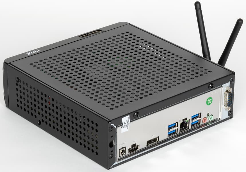 При этом моноблоки — все-таки по-прежнему вещь в себе. Даже если говорить про модели на десктопных комплектующих, всё равно остается привязка к конкретной ЖК-матрице, что на деле устраивает далеко не всех. Full HD с диагональю в районе 24” — давно уже своеобразный стандарт де-факто, однако спросом пользуются и бо́льшие диагонали. Но таких моноблоков куда меньше, а среди бюджетных моделей — совсем мало. Поэтому зачастую лучше раздельный подход. А чтоб не терять в компактности, можно приобрести мини-ПК вместо «большого» системного блока. Разумеется, это накладывает ограничения и на его «начинку», однако несложно заметить, что большинство самых продаваемых компьютеров таковы, что... В маленький корпус тоже поместятся. Лучше всего продаются процессоры среднего класса, в большинстве компьютеров лишь один накопитель (реже — два), дискретная графика стала уже отличительной особенностью специализированных (хотя бы игровых) компьютеров, но массовый покупатель прекрасно обходится и без нее. Когда-то лимитирующим фактором оказывались размеры привода оптических дисков, но и оптика уже с массового рынка ушла. Поэтому зачастую оптимальным решением оказывается что-нибудь типа Hiper M9. Который, по сути, обычный массовый десктоп — просто маленький.