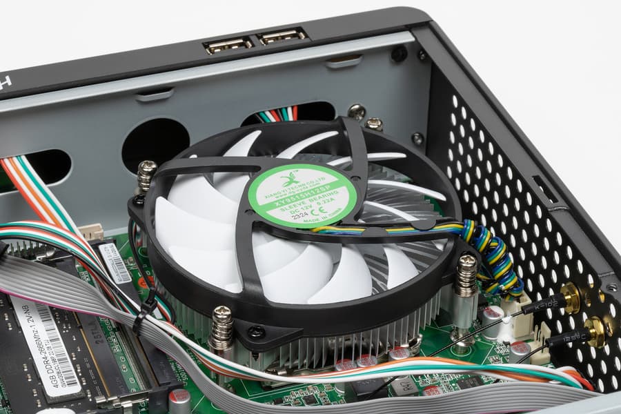 Какой-то специфической системы охлаждения нет — корпус в первую очередь рассчитан на типовые боксовые кулеры, либо (для старших моделей процессоров) что-нибудь более мощное, но тоже низкопрофильное. В принципе, и правильно — с охлаждением процессоров с TDP до 65 Вт они справляются нормально (не говоря уже о простейших случаях, типа Pentium Gold), да и стоят недорого. Какие-то ресурсоемкие задачи на таких компьютерах как правило не решают.