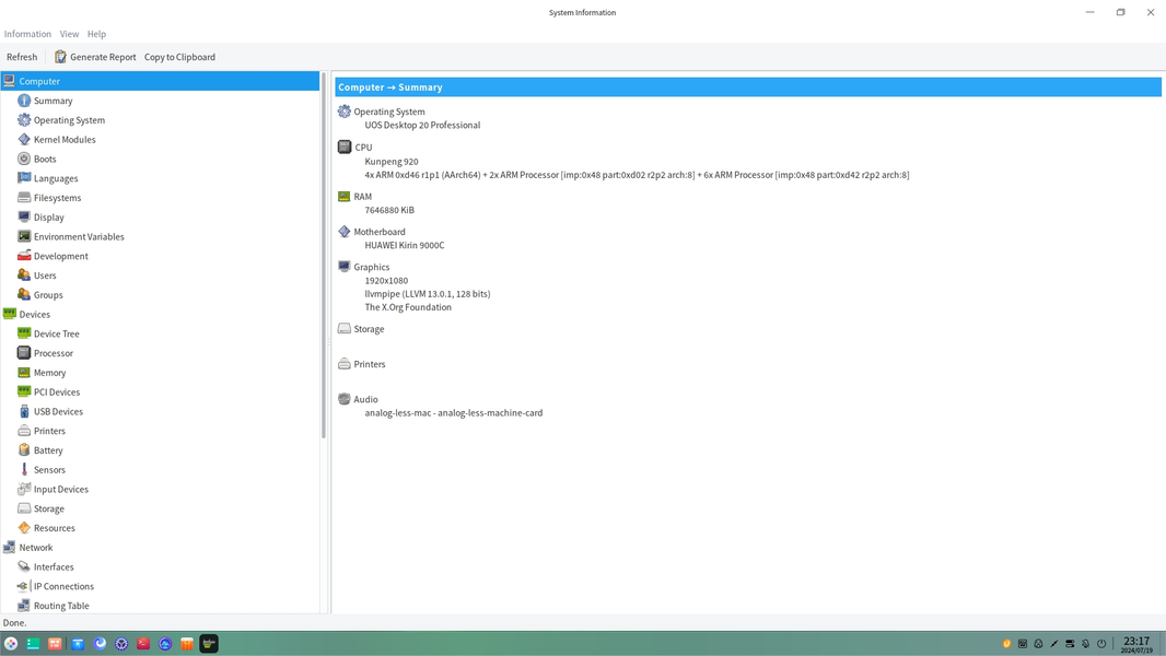 Чисто теоретически Kirin 9000C может работать и под управлением специальной ARM-версии Windows 11, мы пока что не пробовали это сделать, а официально поддерживаются две специальные версии Linux: Kylin и уже известная нам по Loongson система UOS. Попавшая к нам система Huawei имеет предустановленную операционную систему Kylin на базе Linux, но мы использовали и уже известную для нас UOS, также имеющую в основе Linux. Очень кратко расскажем о своих впечатлениях от обеих систем и практическом их применении — применяемые в них оболочки визуально не особенно отличаются от других современных операционных систем.