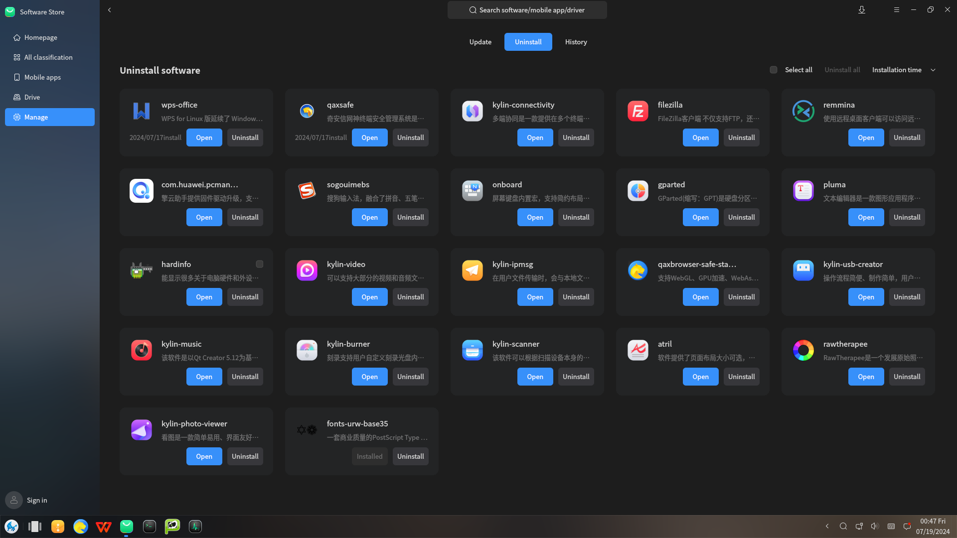 В целом, для уже работавших с современными системами на основе Linux, UOS и Kylin выглядят узнаваемо. Мы уже писали, что некоторым неудобством в случае первой ОС является то, что для получения прав суперпользователя (root) необходимо зарегистрироваться при помощи телефона, электронной почты или мессенджера WeChat. Также может напрягать неполный перевод с китайского языка для части ПО, включая магазин приложений, но с этим можно жить — в крайнем случае придется перевести текст онлайн-переводчиком при помощи камеры мобильного телефона.