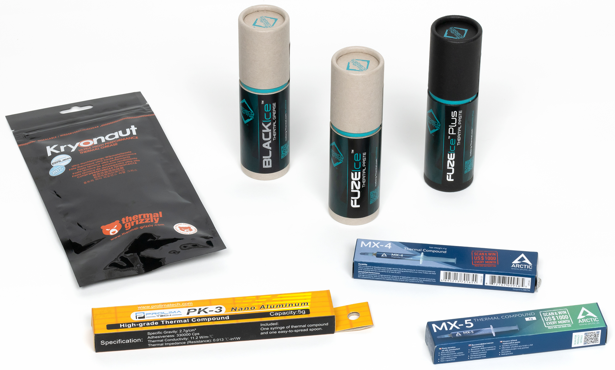 Мы протестировали две термопасты компании Iceberg Thermal: FuzeIce и FuzeIce Plus. Отметим, что эти термопасты еще можно встретить в рознице под названиями BlackIce и BlackIce Plus соответственно. Связано это с тем, что производитель решил сменить название линейки. Эффективность этих термопаст сравнивалась между собой; кроме того, выборка участников тестирования была расширена за счет нескольких популярных термопаст, представленных на российском рынке.