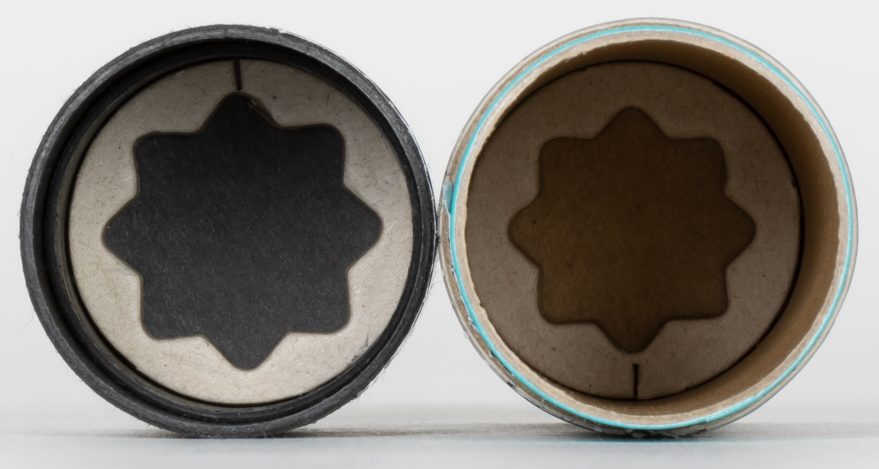 Тубусы разъединяются на две неравные части, которые до вскрытия удерживаются наклейкой, выполняющей информационную и защитную функции. На наклейке, оформленной в фирменном стиле, есть название, описание продукта, основные характеристики, штрих-коды и т. д. Специальные фигурные вкладыши изнутри на торцах тубуса удерживают шприц с термопастой по центру, по крайне мере пока он полный.