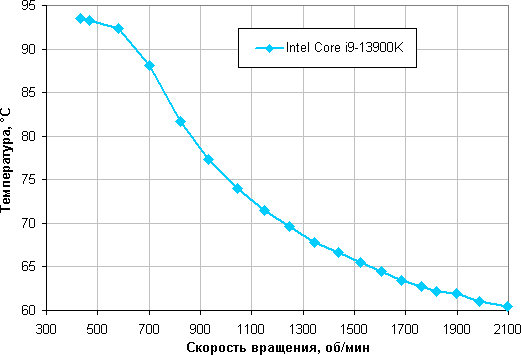 Определение зависимости температуры процессора Intel Core i9-13900K при его полной загрузке от скорости вращения вентилятора(-ов) кулера
