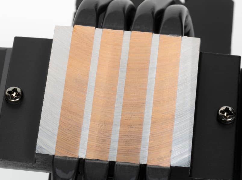 Кулер оснащен вынесенным радиатором, к которому тепло от процессора передается по четырем тепловым трубкам. Трубки, разумеется, медные. У основания теплосъемника трубки сплющены и впрессованы в канавки. Теплосъемник изготовлен из алюминия.