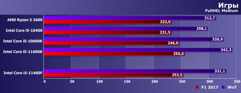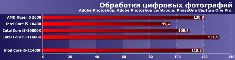 Общий итог — соответствующий. На деле неплохой, но Core i5-11400F и должен стоить не дороже Ryzen 5 3600, поскольку он и не быстрее. А вот из старой линейки линейки Core i5, пожалуй, смысл сохраняют только младшие модели — и только за счет цены. Впрочем, как показало наше недавнее игровое тестирование для многих сфер применения их как раз и достаточно. Но можно бегло прикинуть — что меняется теперь и здесь.