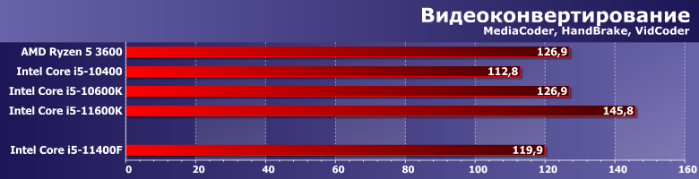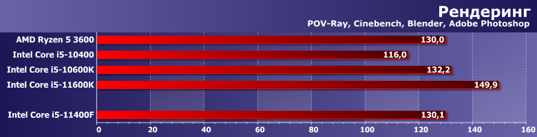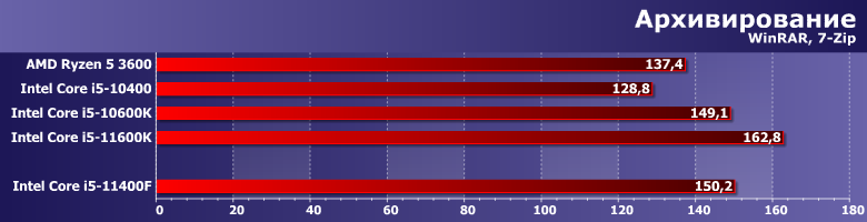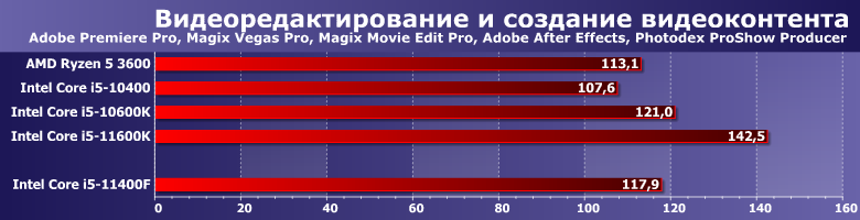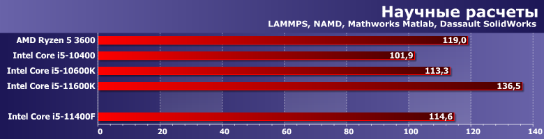 Программы идеологически близкие, но по-разному устроенные. В итоге где-то i5-11400F удается существенно ускориться, а где-то он опять с треском впечатывается в теплопакет. В предыдущем семействе такой разницы в производительности младших и старших моделей не было, но стоило увеличиться энергопотреблению... Впрочем, для конкуренции с предыдущим и так хватило — но на рынке есть не только оно.