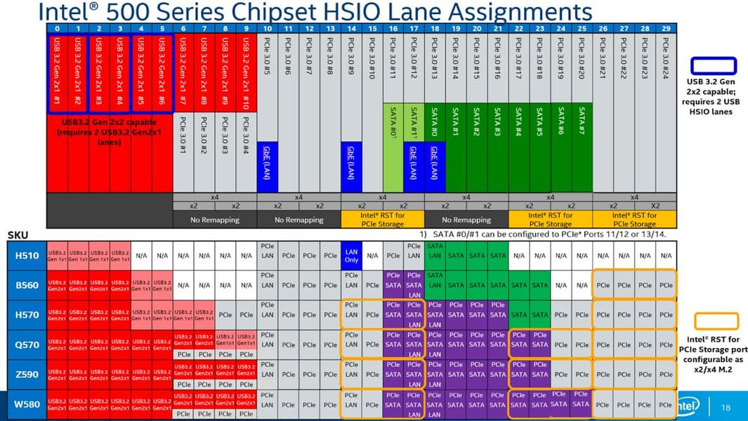 Так что остается какой-то (всюду разный) профит от увеличения IPC. В некоторых приложениях скажется и затыкание старых «дырок» в безопасности — которые ранее «латали», что производительность все равно снижало (так что оказывалось не на много лучше чисто программных методов), а сейчас устранили by design. И улучшение периферийных возможностей — вот это уже увидят многие. Например, впервые со времен LGA1156 процессоры поддерживают не 20 линий PCIe, а 28. 16 как обычно для видеокарт в первую очередь — только теперь это PCIe 4.0. Еще четыре линии PCIe 4.0 — для «первичного» NVMe-накопителя. В этом плане обновленная LGA1200 напоминает АМ4 — в основном платы на B550: все, что старше или уровнем ниже, не поддерживает PCIe 4.0, а выше Х570 — который уже и сам по себе реализует именно новый стандарт всеми линиями. В чипсетах Intel 500-й серии — только 3.0, зато сами они связываются с процессором не четырьмя, а восемью линками DMI, так что в этом плане они уже аналогичны Х570, а не В550. Правда не стоит забывать о том, что процессоры AMD сами по себе включают еще и четыре порта USB3 Gen2 (при работе с новыми чипсетами — в старых системах это вырождается в Gen1, но не обнуляется), что может «сэкономить» как раз порядка четырех линий PCIe. Но про чипсеты мы поговорим отдельно — там все не настолько однозначно, чтоб сравнивать продукты AMD и Intel напрямую. А вот сравнительно с предыдущими решениями компании — однозначный шаг вперед, поскольку еще год назад на четырех линиях DMI «висели» все, кроме видеокарты: SSD, SATA, сеть, USB и т. п. Сейчас на них отведен вдвое более быстрый интерфейс, а один SSD и вовсе выведен за рамки. И работать сам по себе может быстрее.