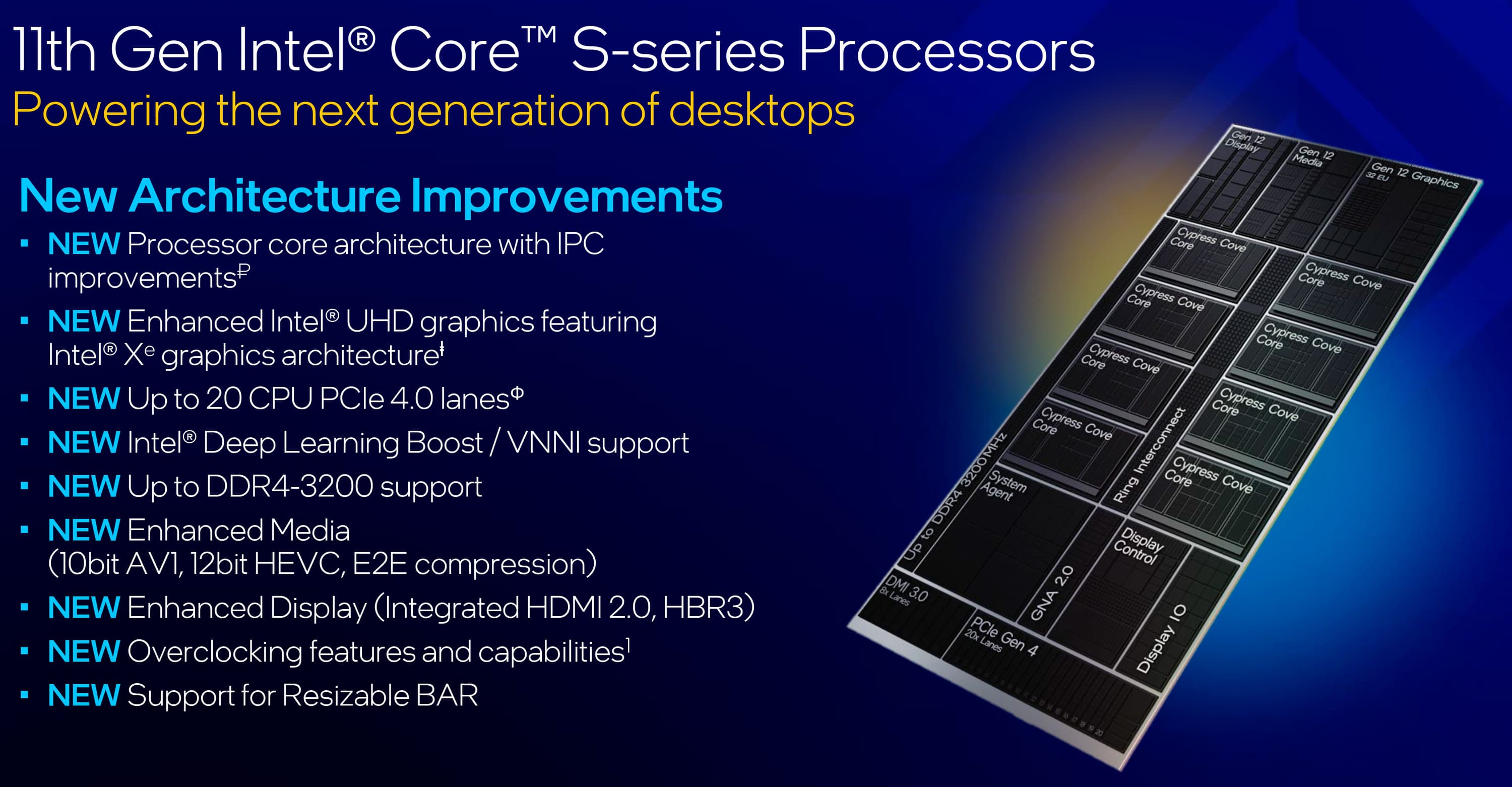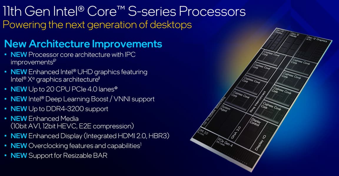 С техпроцессом пока в этом сегменте как оказалось ничего сделать нельзя. Да, компания наконец-то уже освоила многострадальные 10 нм и даже разок их успела улучшить — но это используется в серверных и ноутбучных процессорах «одиннадцатого поколения». А настольное «одиннадцатое» в этом плане ничем не отличается от «десятого». Но внимания заслуживает в любом случае — даже если окажется совсем неудачным. Причина чего формулируется буквально тремя словами — «это не Skylake». Опять же — к ноутбучным процессорам данная формула начала применяться раньше. Но в настольных процессорах — впервые с того самого 2015 года. Что, естественно, при любом раскладе имеет огромное значение.
