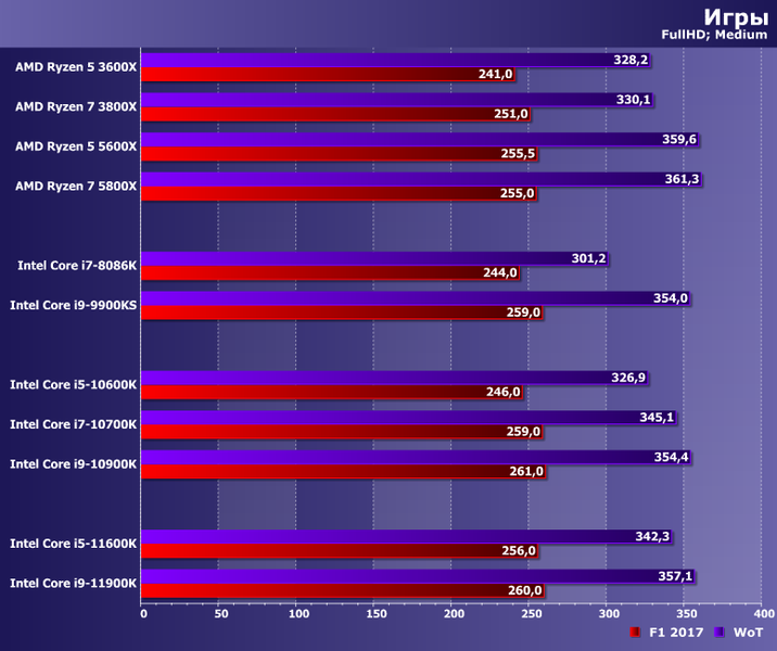 Впрочем, складывает уже ощущение, что для современных процессоров и они-то при используемой видеокарте таковыми быть перестают. Но, как уже было сказано выше, этот вопрос имеет смысл изучать отдельно и подробно. Один из первых материалов такого рода недавно вышел — в ближайшее время ожидается продолжение цикла. В том числе, и с участием новинок данного семейства. Поскольку пока впечатление неоднозначное. Core i5-11600K, например, ожидание оправдывает — он действительно заметно быстрее старых шестиядерников. А вот Core i9-11900K быстрее восьмиядерных процессоров, но где-то может и проиграть i9-10900K.