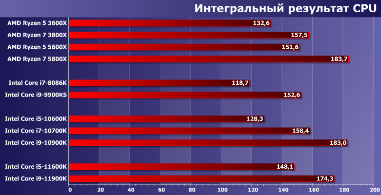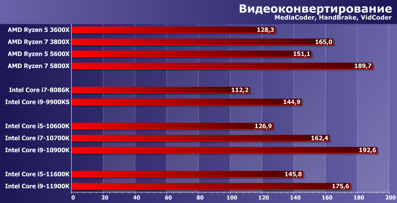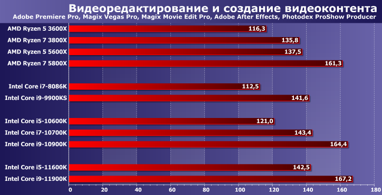 Как уже не раз было отмечено, у всех старших моделей процессоров ядер даже больше, чем нужно этим программам — так что все выражается в сравнение микроархитектур с поправкой на тактовые частоты. А с этим у «одиннадцатого» поколения дела обстоят лучше, чем у «десятого» или «старых» Ryzen. Но, справедливости ради, хуже, чем у «новых». С другой стороны, это AMD пока еще обязательно нужно убедительно побеждать — Intel достаточно не слишком проигрывать. Решающее слово в таких условиях скажут реальные розничные цены и доступность процессоров. А на рынке готовых систем — еще и ситуация с видеокартами. Нынешняя — более благосклонна к Core: они-то без дискретной графики обходиться могут (не для всех задач такое подходит — но хотя бы как-то работает всегда), а старшие Ryzen — нет.