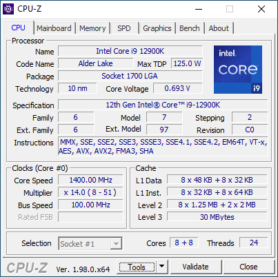 | Intel Core i9-12900K (8+0) | 230,4 |
