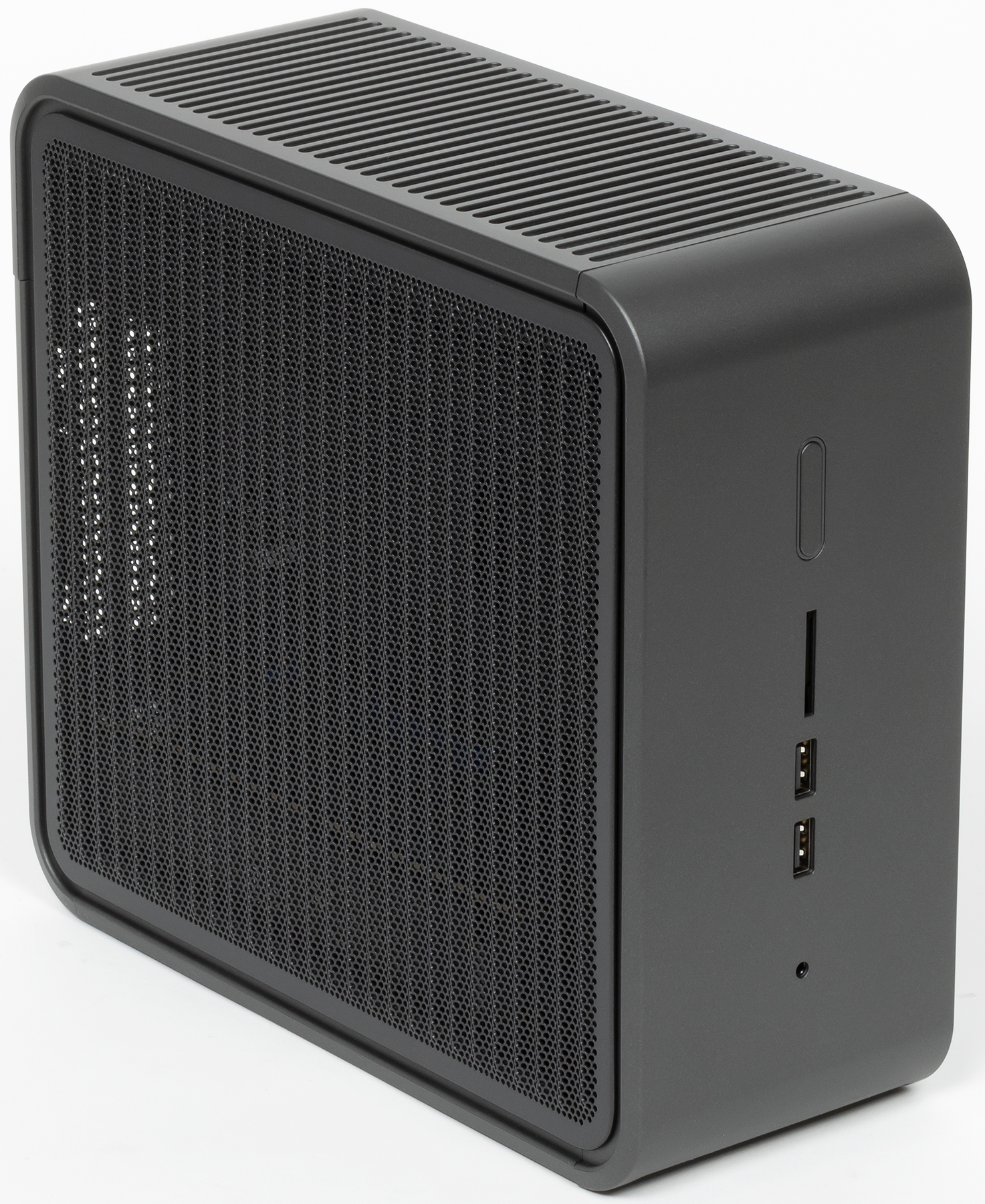 Все интерфейсные разъемы — как и ранее, спереди и сзади. Причем разъемы те же самые. На передней панели: два порта USB3 Gen2, кнопка включения и разъем для подключения гарнитуры. Также сюда переехал полноразмерный слот для SD-карт с поддержкой UHS-II, т. е. скоростных режимов до 312 МБ/с. Сзади отметим наличие четырех портов USB3 Gen1, двух — Thunderbolt 3 (могут использоваться и как USB, что доводит общее количество USB-портов до восьми), и целых двух гигабитных сетевых разъемов. Кроме того, для вывода видеосигнала со встроенного GPU предназначен HDMI 2.0a. Все эти разъемы расположены на «процессорной» карте. Рядом с ней могут «появиться» и новые — при установке карт расширения. И не только видеокарты: например, сеть на 10 Гбит/с или контроллер USB3 Gen2×2, или и то, и другое сразу. Главное помнить, что карт расширения может быть две, высота — практически не ограничена (т. е. низкопрофильные не требуются), а длина их не должна превышать 203 мм.