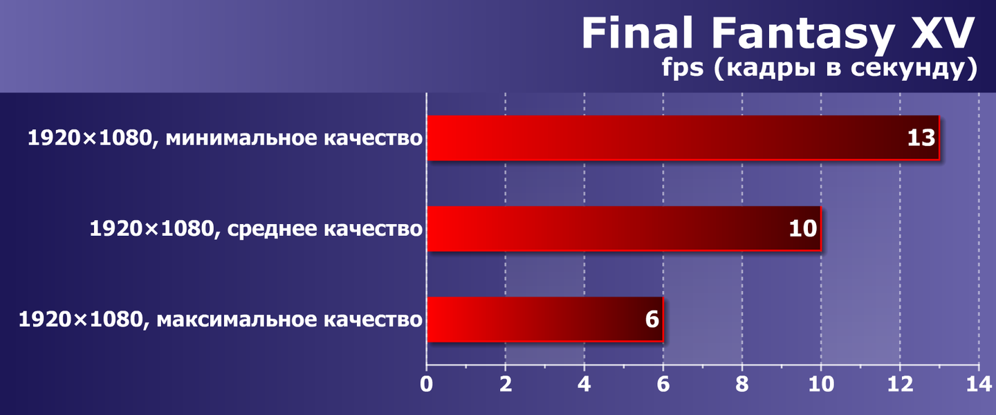 Аналогичная ситуация и в современном ролевом боевике (Action/RPG) Final Fantasy XV — без снижения разрешения не обойтись.