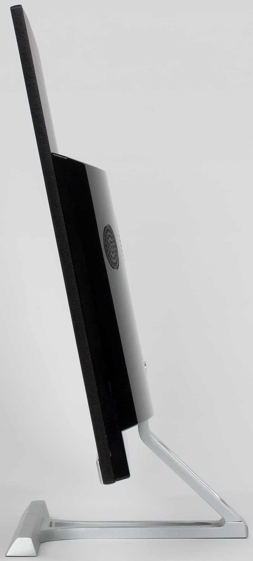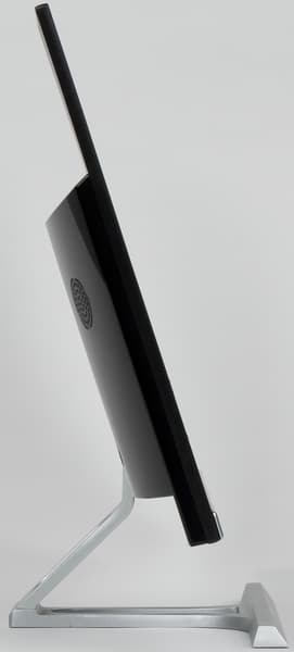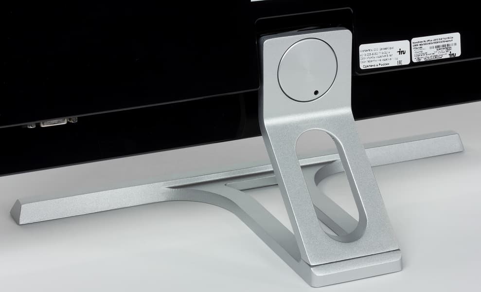 Описывать дизайн моноблочных компьютеров — задача неблагодарная: по сути это монитор, куда заодно встроен и компьютер. Когда-то, впрочем, такие ПК существенно отличались от «чистых» мониторов большей громоздкостью — сейчас эта проблема осталась в прошлом. Отличить J2313 от современного монитора с той же диагональю и «безрамочным» дизайном (рамки на самом деле есть, но три из них очень тонкие) можно только по чуть-чуть большей толщине: 43 мм вместо ~20-25 мм. Да и то — в самой толстой части, по которой легко оценить размер собственно «компьютера»