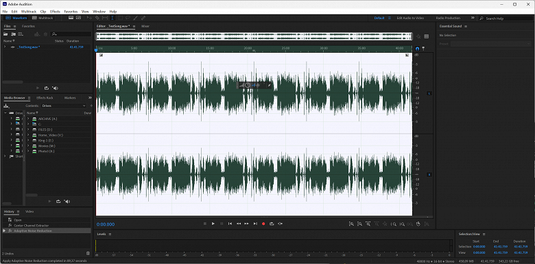 По виду гистограммы нельзя сказать, что́ произошло с исходным файлом, но это для тестирования неважно. Переходим ко второму этапу в Adobe Audition.