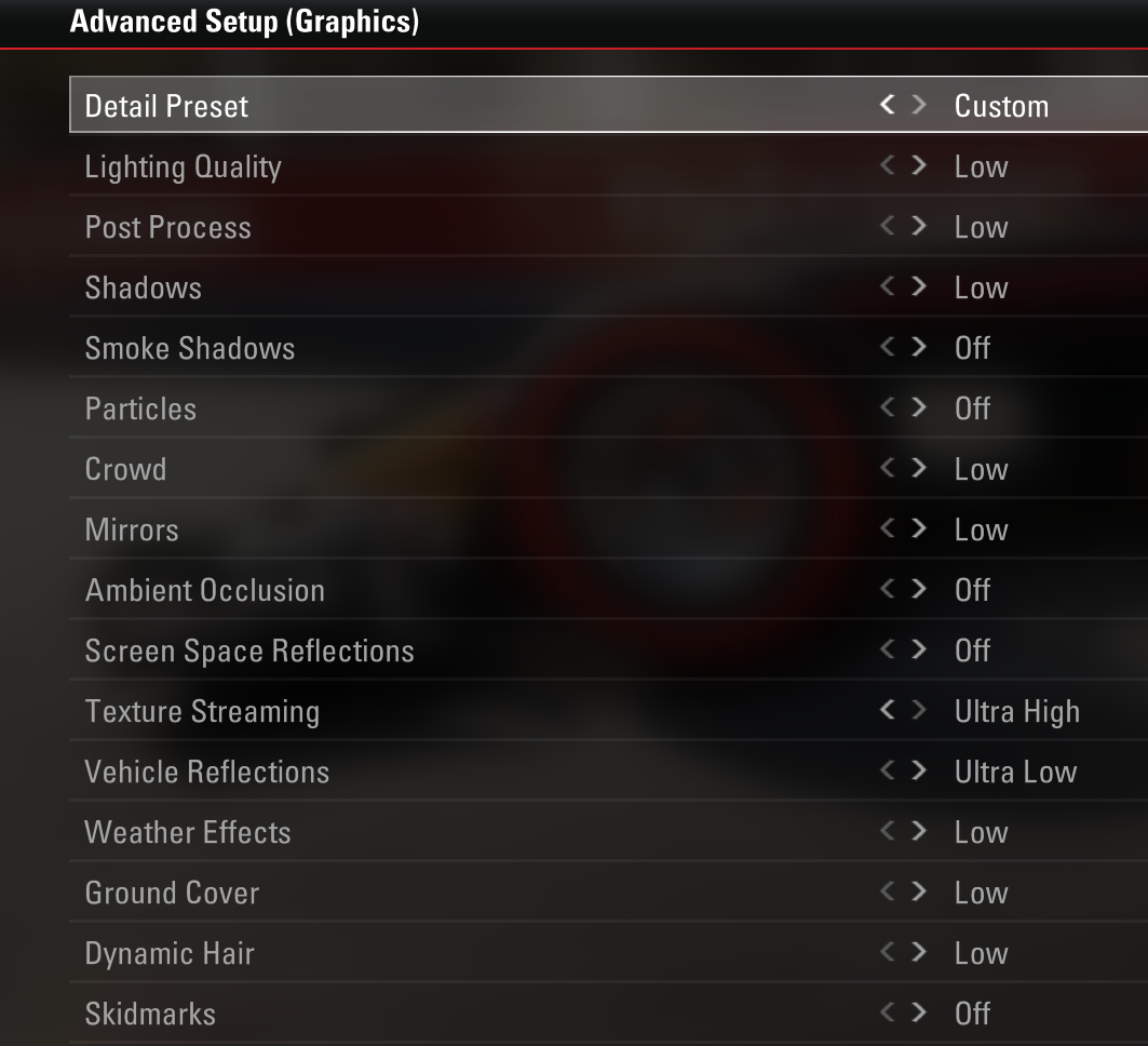 Настройки игры на минимальное качество эквивалентны настройкам, приведенным на следующем скриншоте: