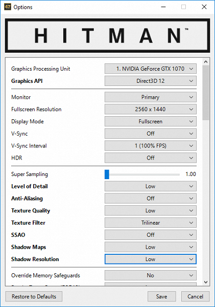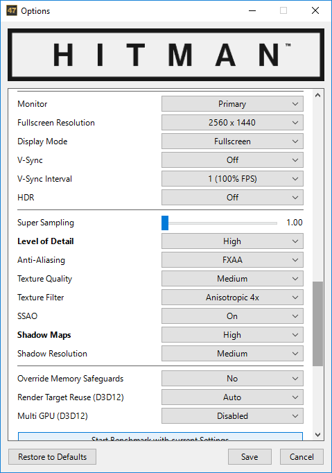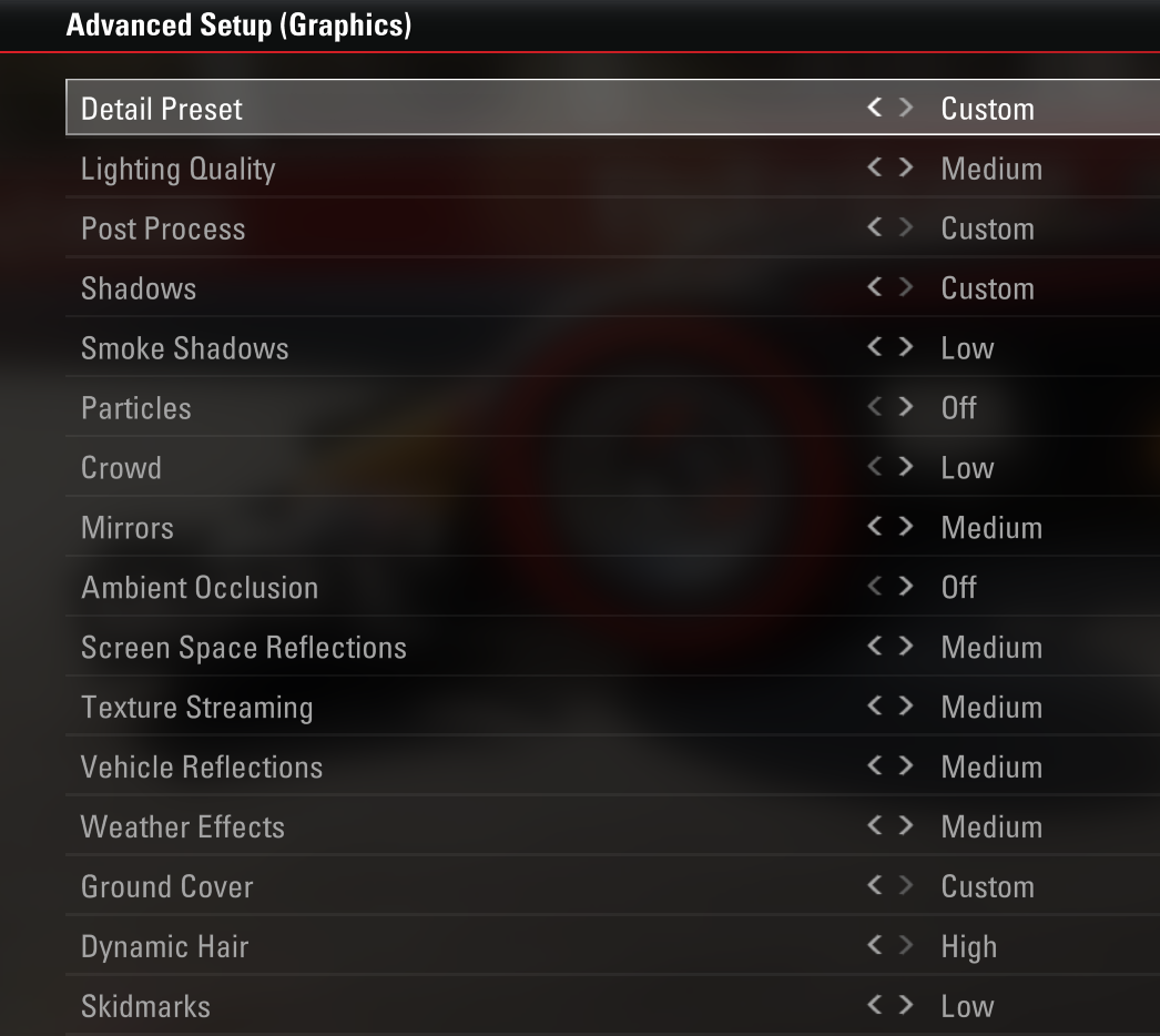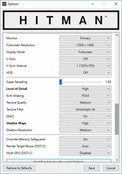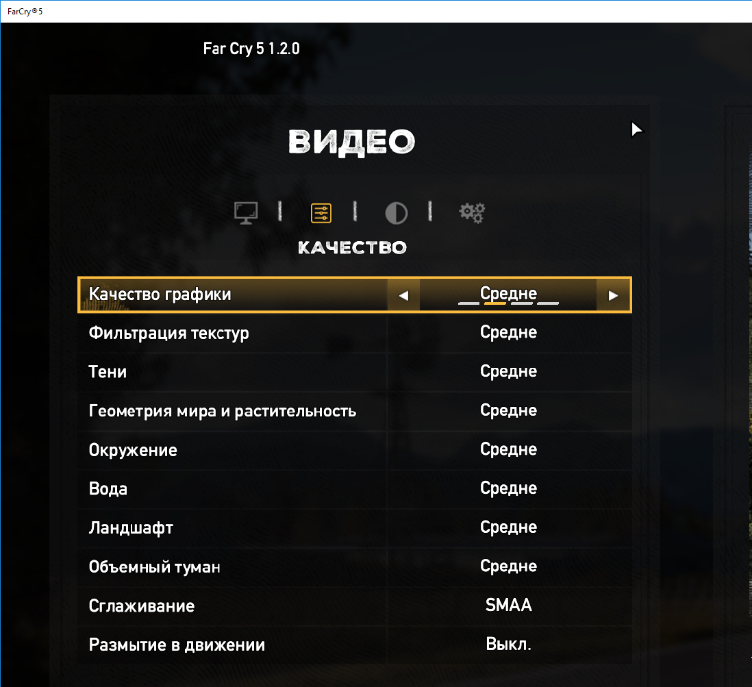 Настройки игры на среднее качество эквивалентны настройкам, приведенным на следующем скриншоте: