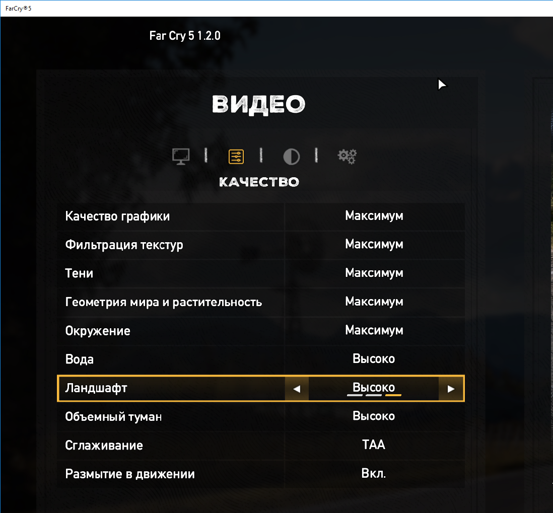 Настройки игры на максимальное качество эквивалентны настройкам, приведенным на следующем скриншоте: