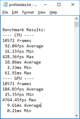 В игре Hitman имеется встроенный бенчмарк, который мы и используем для тестирования. Результаты этого бенчмарка сохраняются в текстовом файле profiledata.txt (C:|Users|User|hitman). В файле сохраняется два результата — CPU и GPU: