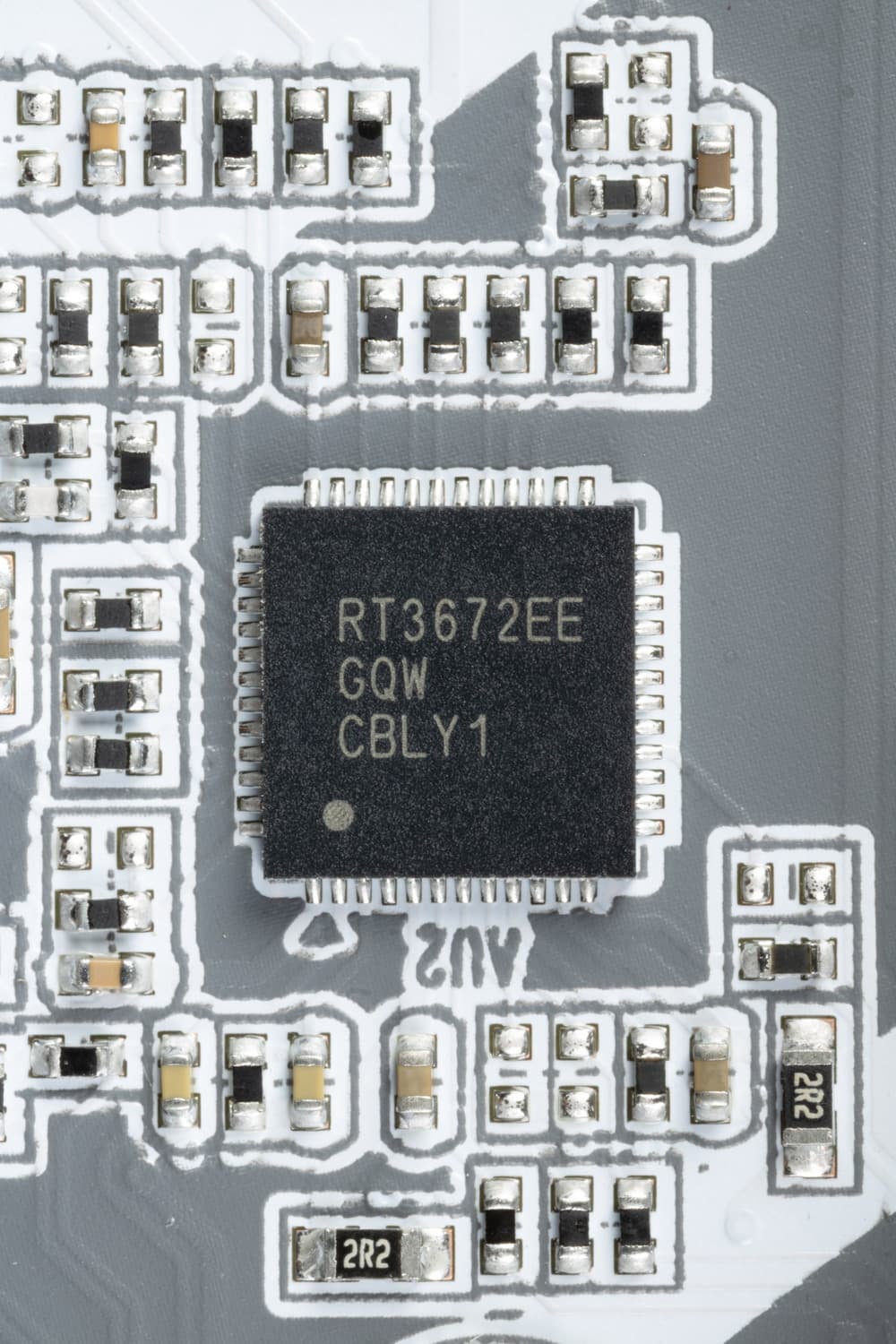 Управляет 2-мя фазами питания SoC ШИМ-контроллер RT3672 от Richtek.