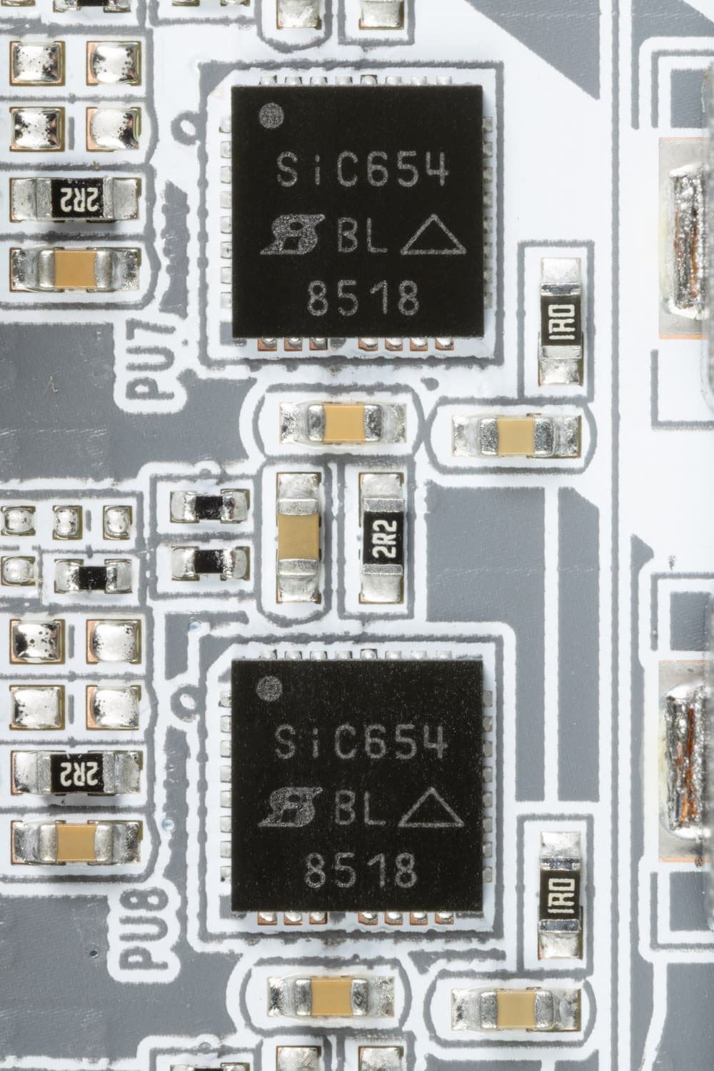 Каждый канал фазы имеет суперферритовый дроссель и транзисторную сборку SiC654 от Vishay Systems (до 50A).