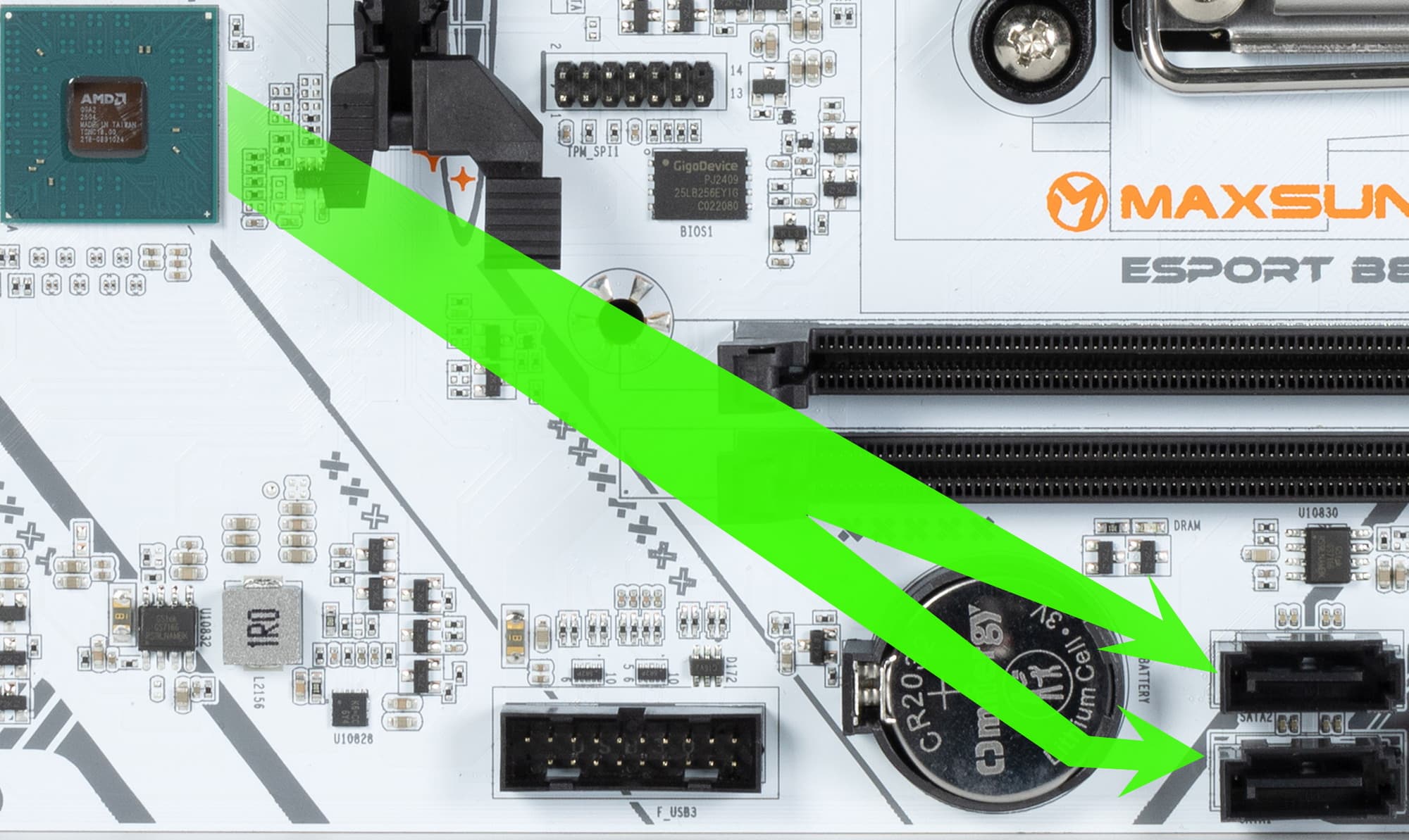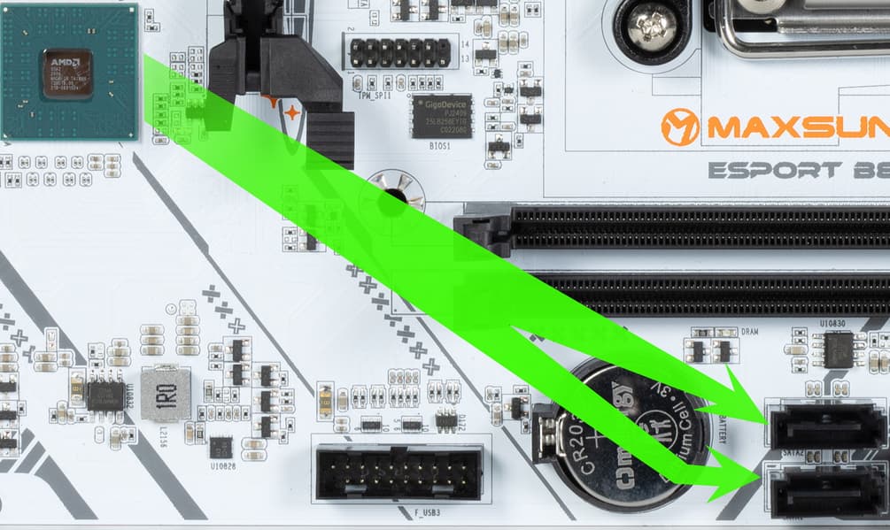 2 порта SATA 1,2 реализованы через B850.