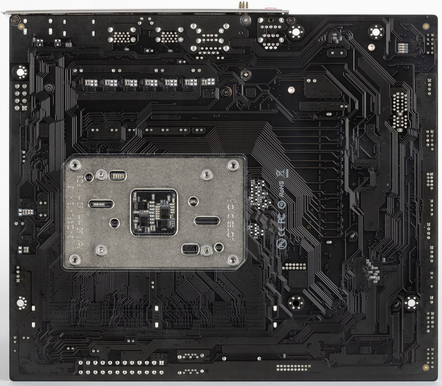 Защитной пластины (бэкплейта) у платы нет.