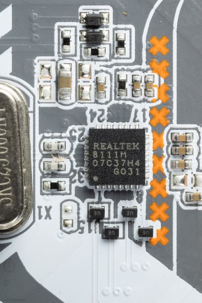 Материнская плата оснащена средствами связи неплохо. Имеется скоростной Ethernet-контроллер Realtek RTL8111, способный работать по стандарту 1 Гбит/с.