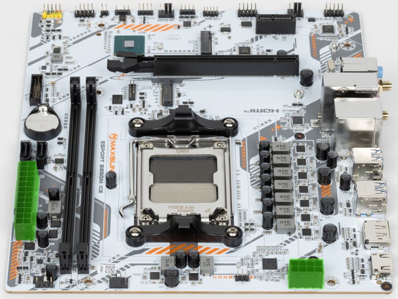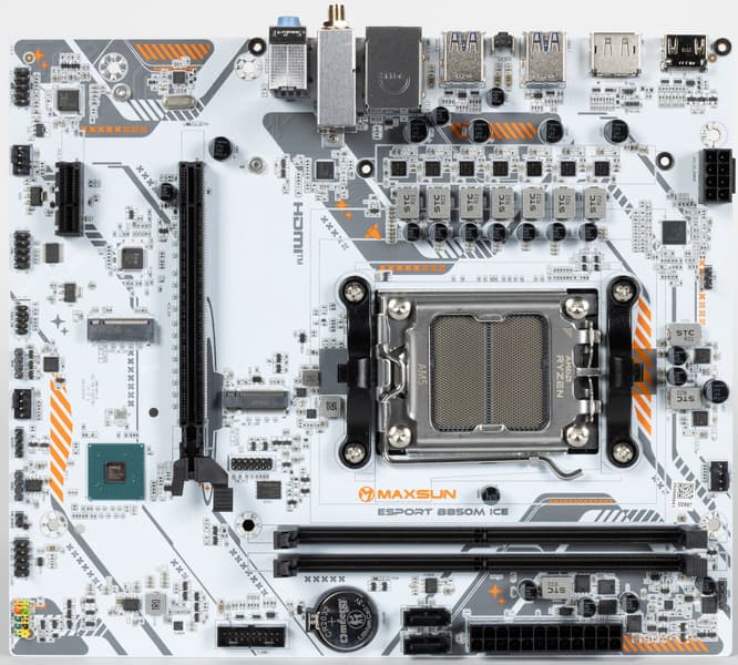 Maxsun eSport B850M WiFi Ice — одна из самых недорогих материнских плат для платформы AMD AM5 на базе чипсета AMD B850. На момент публикации обзора ее розничная стоимость начиналась от 11 тысяч рублей. Безусловно трудно ожидать широкой поддержки периферии от подобного продукта, однако минимальным набором нужных портов и слотов плата обладает.
