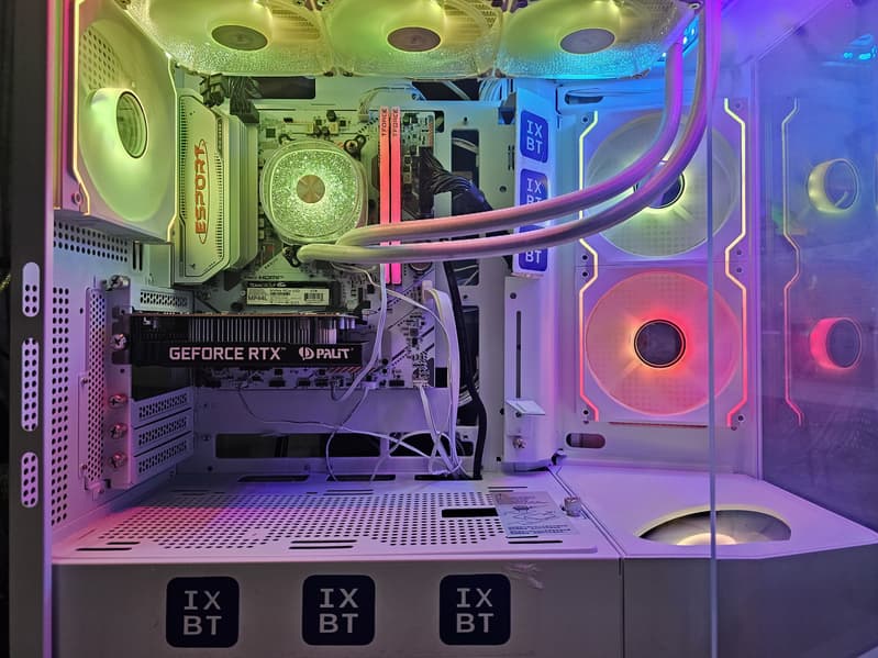 В арсенале платы также есть 2 порта SATA, 2 слота M.2 и 3 разъема для вентиляторов. Система питания процессора относительно слабая, но способная обеспечить работу среднеуровневых процессоров с некоторым запасом на разгон. Плата имеет скромную систему охлаждения, все слоты M.2 без радиаторов. Сетевые возможности включают проводной контроллер 1 Гбит/с и беспроводной Wi-Fi 6E + Bluetooth 5.2. В числе плюсов платы можно упомянуть возможности для подключения дополнительных RGB-устройств. Также надо отметить симпатичное исполнение платы — она хорошо подойдет для ПК белого цвета.