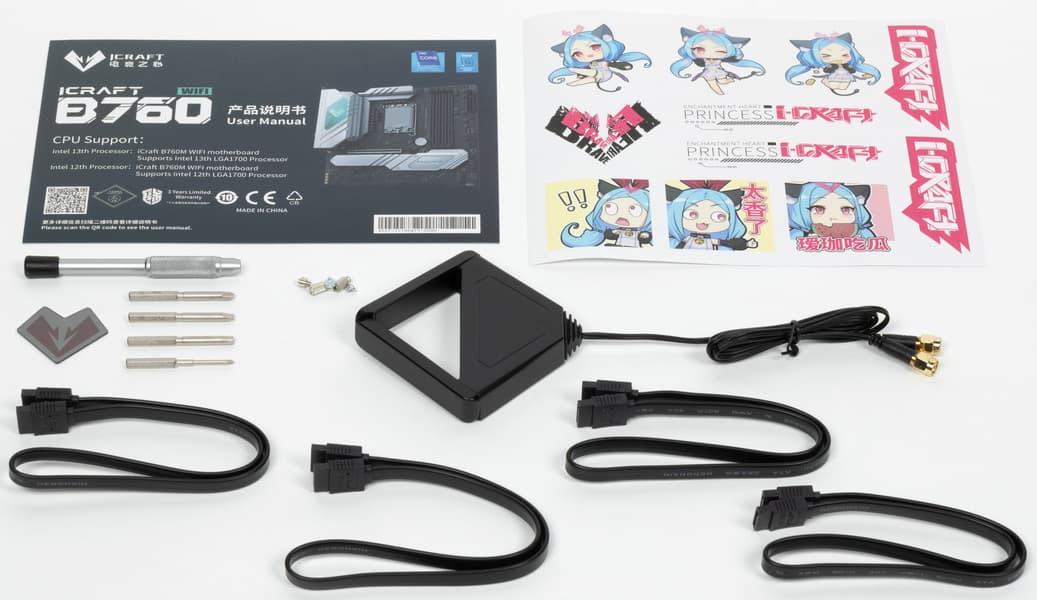 Maxsun iCraft B760M WiFi поставляется в большой коробке черно- белого дизайна. Комплект размещен под платой в отдельном отсеке.