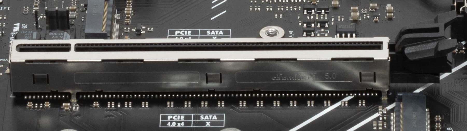 Верхний слот PCIe x16 имеет металлическое армирование из нержавеющей стали, которое увеличивает их надежность (что может быть важным в случае довольно частой смены видеокарт, но что более важно: такой слот легче выдержит нагрузку на изгиб в случае установки очень тяжелой видеокарты топового уровня. Кроме того, такая защита предохраняет слоты от электромагнитных помех.