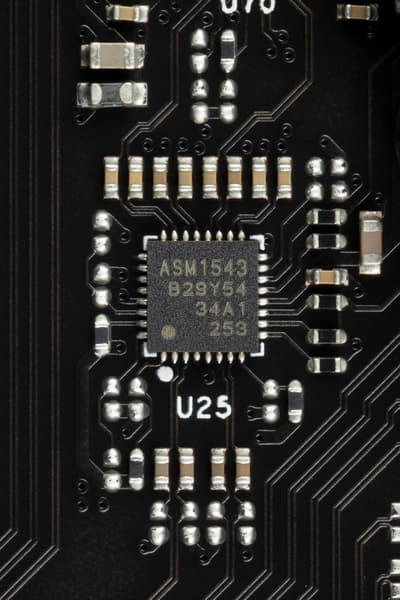 - ASMedia ASM1074 (USB 3.2 Gen1 хаб) (1 линия PCIe 3.0);