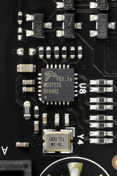 В аудиоцепях платы применяются «аудиофильские» конденсаторы Nichicon Fine Gold.