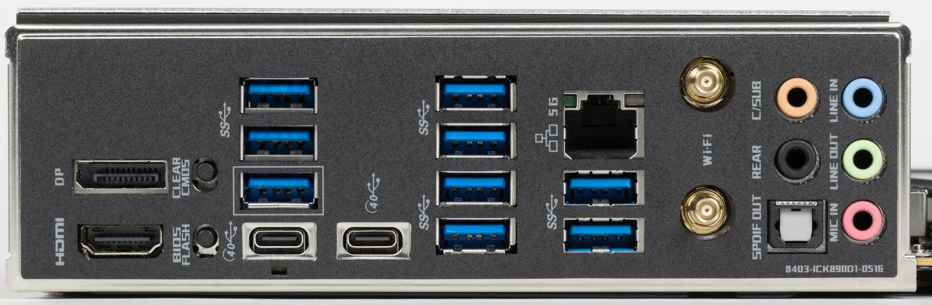 - 2 порта USB4: оба реализованы через Thunderbolt 4, встроенный в CPU и представлены двумя портами Type-C на задней панели;