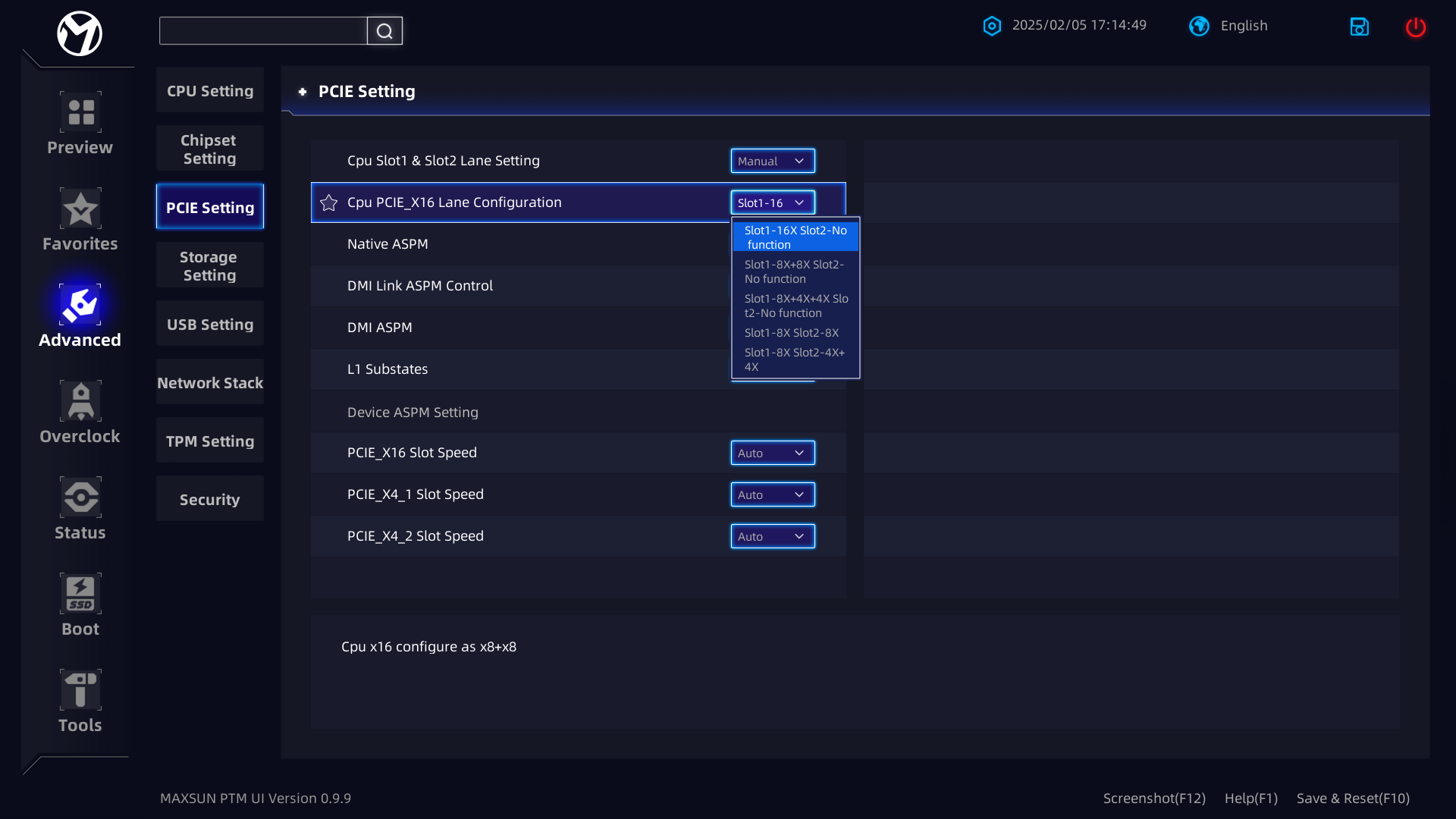 Теперь посмотрим выше на то, как работают процессоры в данной конфигурации. У CPU Core Ultra 2xx всего 24 линии PCIe, из них 4 линии версии PCIe 5.0 отведены на порт М.2 (M.2_1), 4 линии версии PCIe 4.0 отведены на порт М.2 (M.2_2) . Оставшиеся 16 линий PCIe 5.0 надо делить на два слота PCIe x16_1/3. Вариантов переключения несколько: