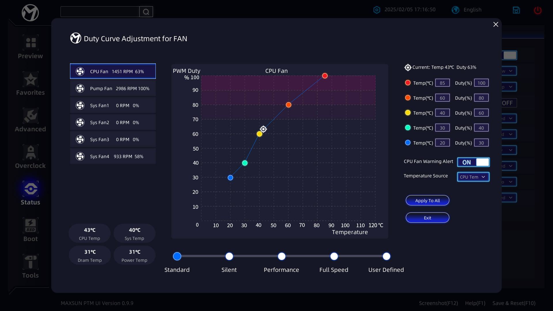 Запускаем все в режиме по умолчанию (в BIOS – профиль от Maxsun). Затем нагружаем тестами OCCT.