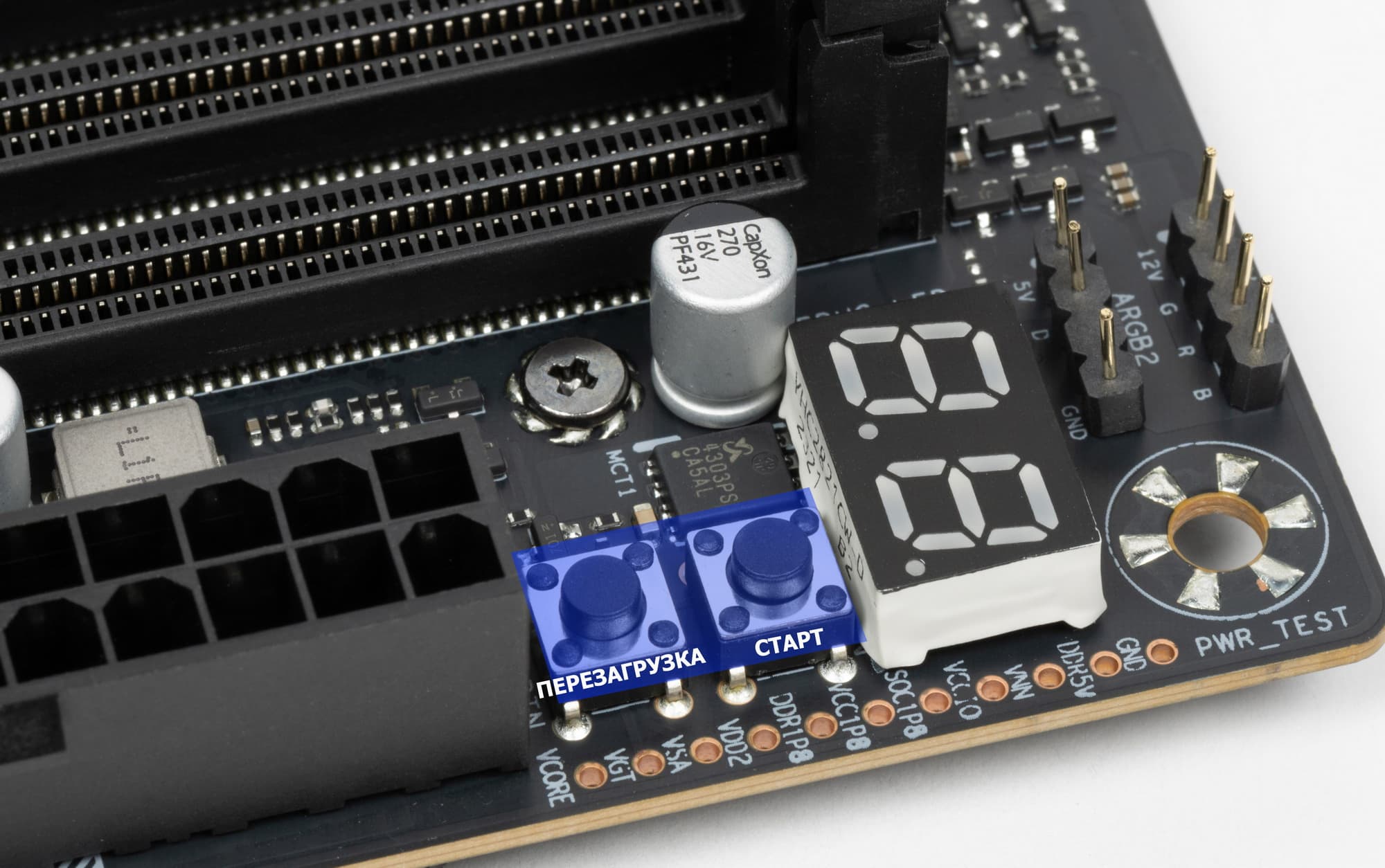 Для удобного извлечения видеокарт из слота PCIe x16_1 имеется особый механизм c кнопкой.