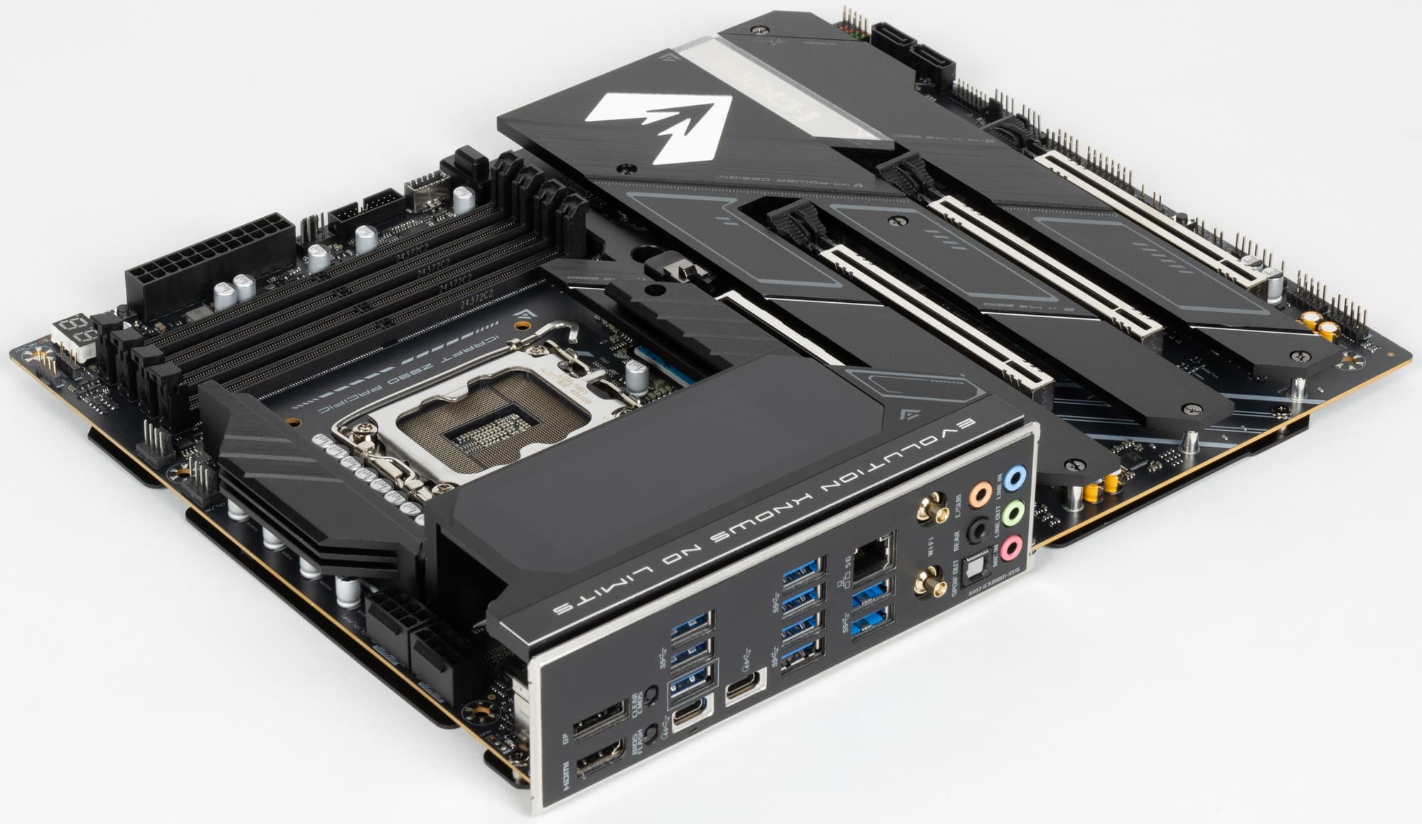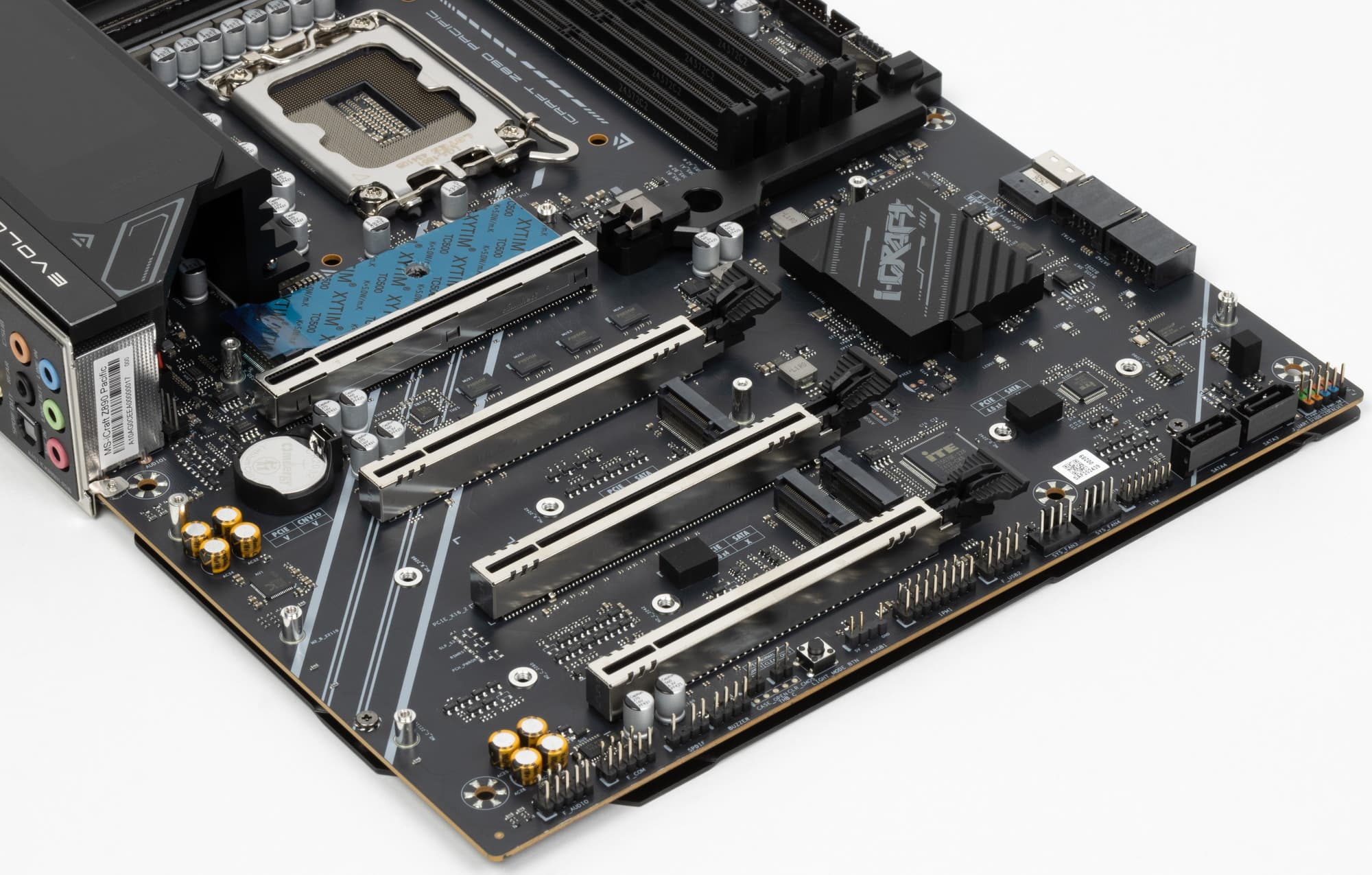 Как я уже упоминал ранее, M.2 слоты также имеют радиаторы: у двух верхних — свои персональные радиаторы, у остальных — общий.
