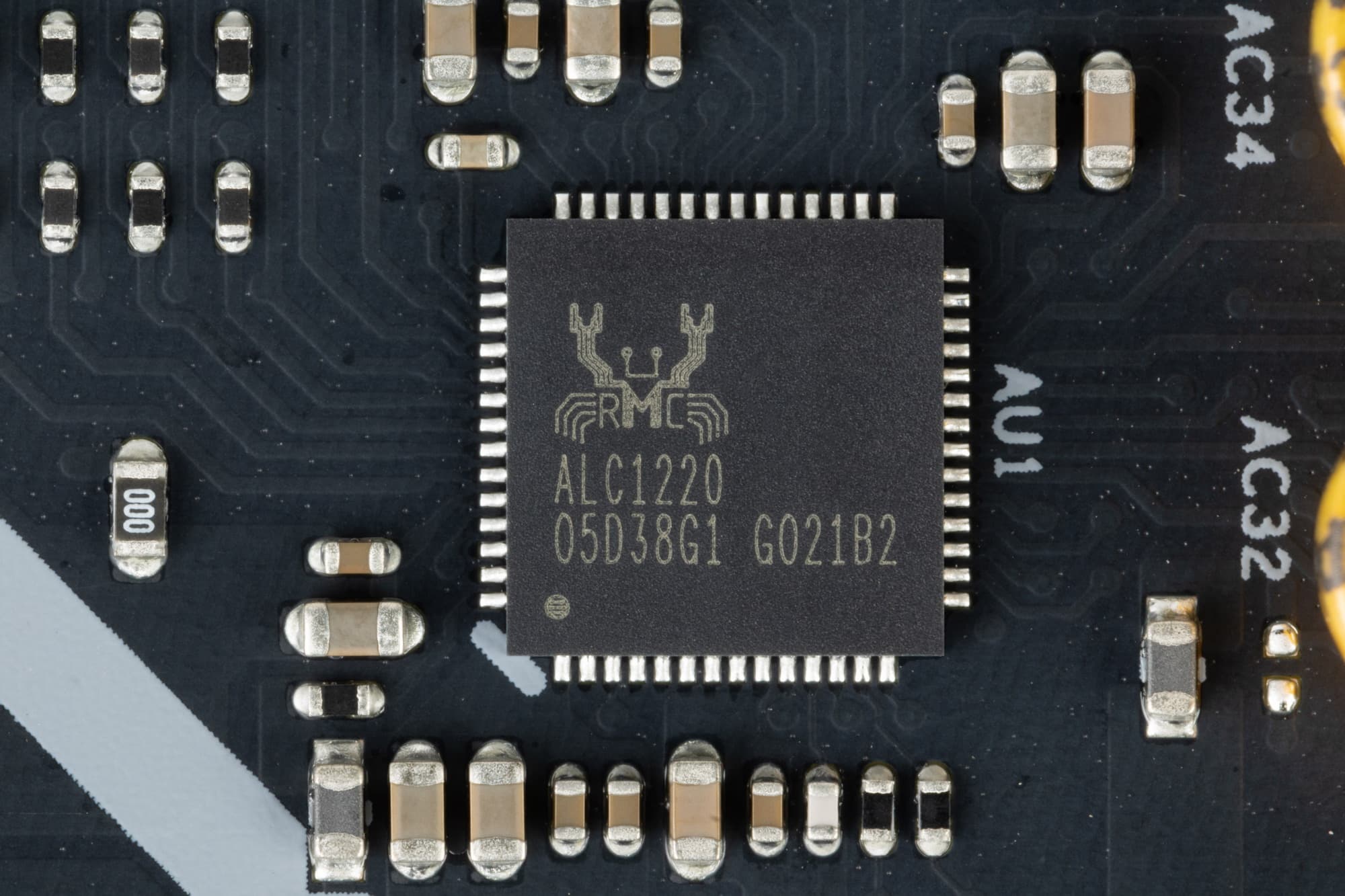 В данном случае плата оснащена аудиоподсистемой, где звуком заведует аудиокодек Realtek ALC1220, он целом обеспечивает вывод звука по схемам до 7.1 с разрешением до 24 бит /192 кГц. Не забываем, что для работы такого кодека требуются сигнальные линии USB 2.0.