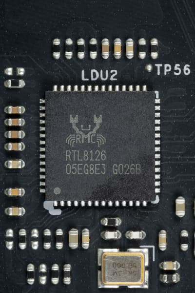 Материнская плата оснащена средствами связи хорошо. Имеется скоростной Ethernet-контроллер Realtek RTL8126, способный работать по стандарту 5 Гбит/с.
