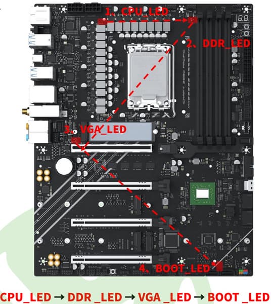 4 порта SATA 1,2,3,4 реализованы через чипсет Z890 и поддерживают создание RAID. Она размещены по-парно на разных углах матплаты.