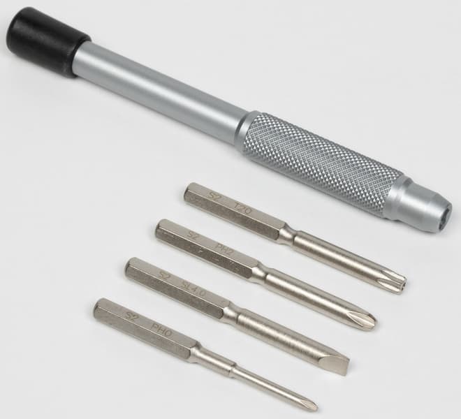 В комплект поставки не просто сувенирная, но весьма полезная в деле отвертка с четырьмя насадками.