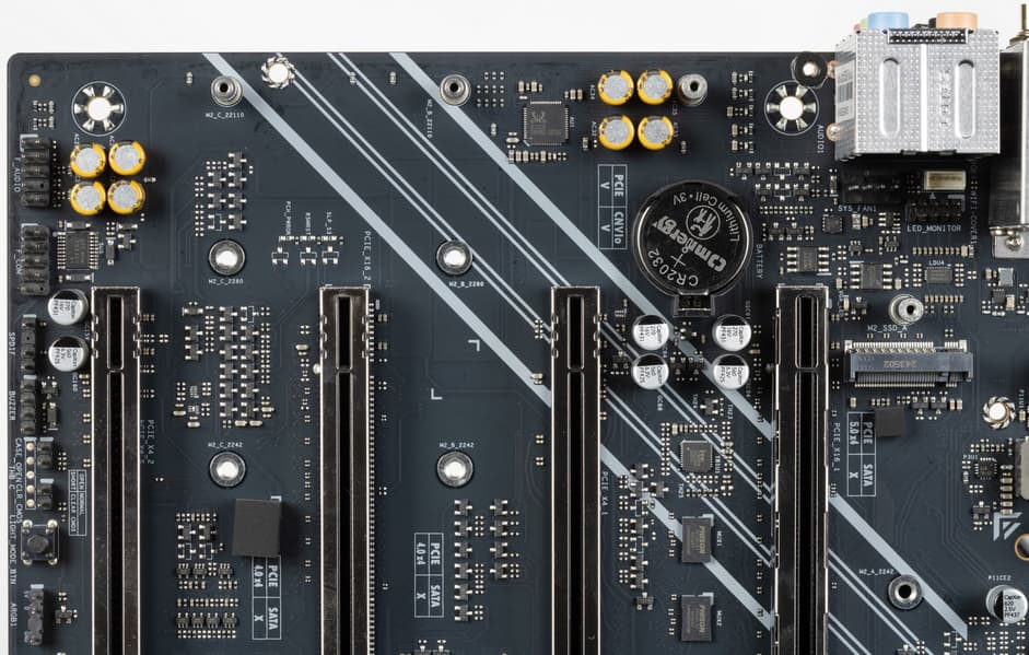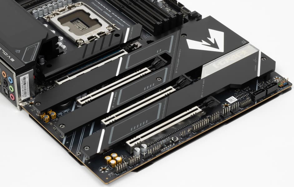 Стоит отметить, что даже при отсутствии устройств в первом PCIe x16_1 третий слот PCIe x16_3 все равно получает только 8 линий PCIe 5.0.